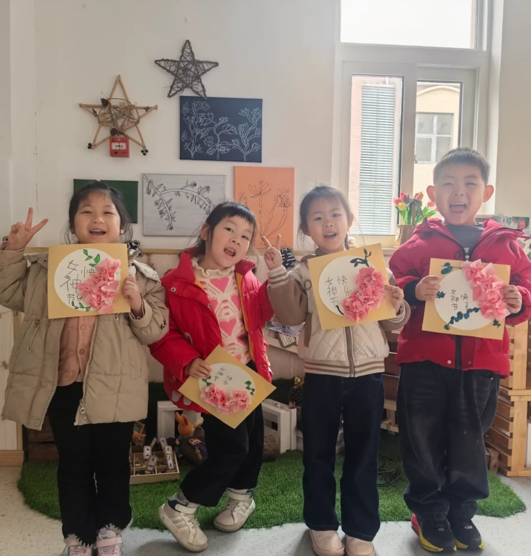 大班的孩子们用多样的形式,向身边了不起的女性致敬。他们亲手绘制专属帆布包,认真描绘出心中最美的她,还精心制作了温柔的女神节纸巾花。每一件作品,都藏着孩子们最真诚的敬意与感谢,献给家中一直默默付出、辛苦又可爱的每一位“她”。
