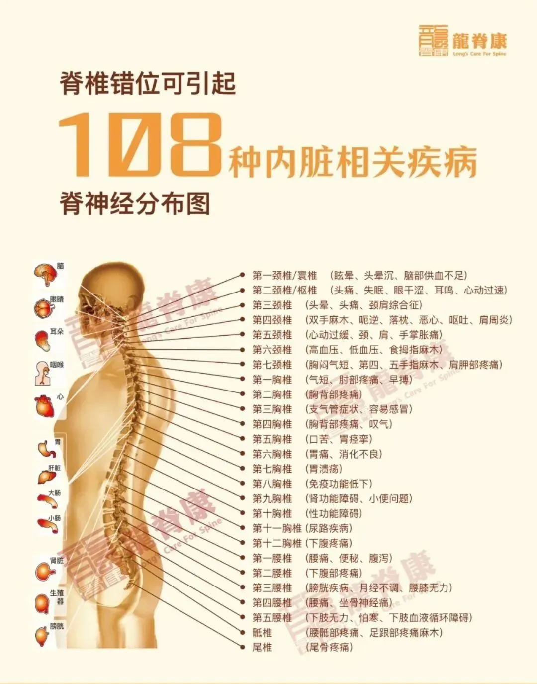殊不知,各大专科无法解决的疑难杂症,竟可能与脊椎相关!脊椎错位也可引起108种内脏相关疾病!