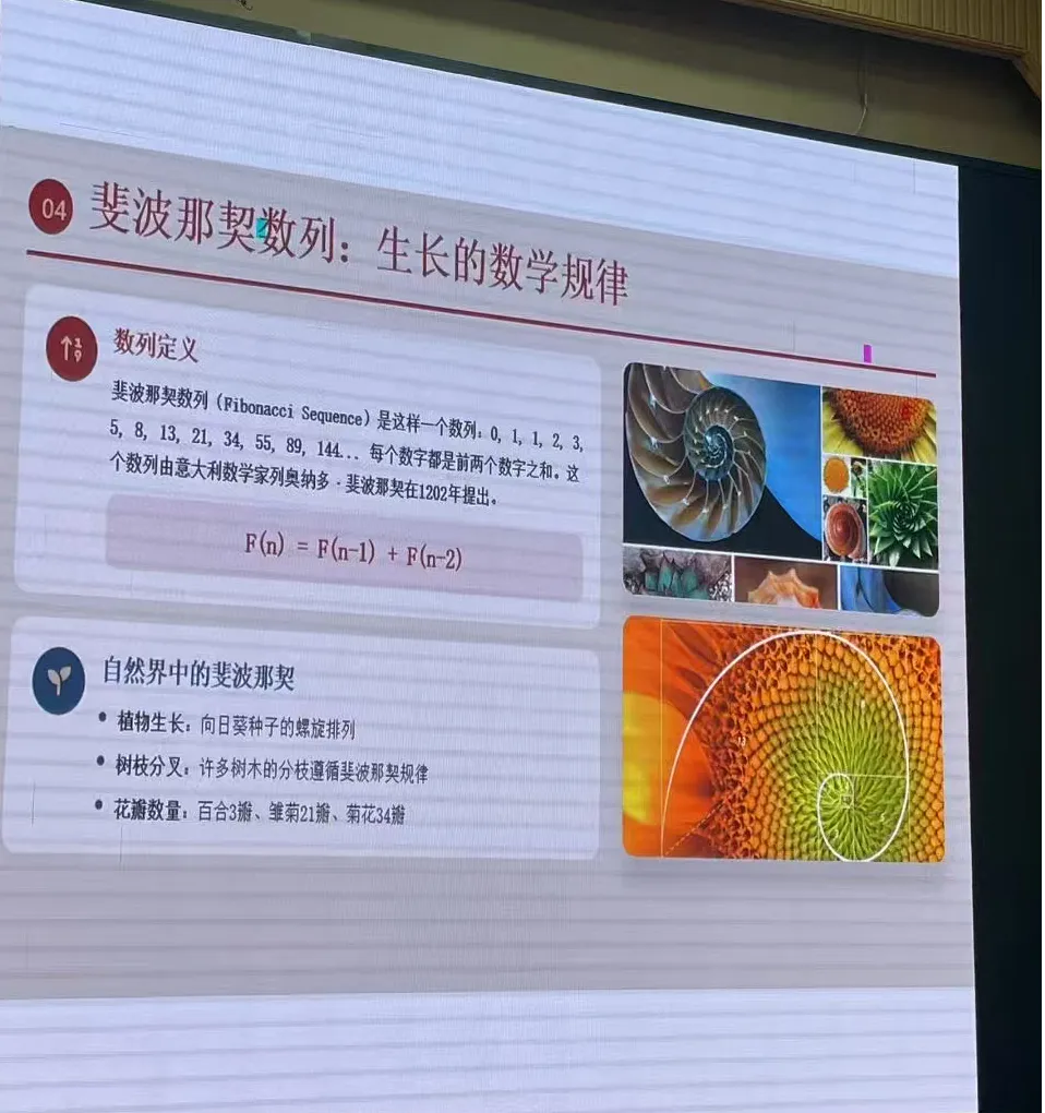 数学教研组长叶榕老师则以《数学艺术》为题,带领大家走进理性与美学的奇妙交汇。她从几何雕塑的秩序之美,讲到分形艺术的自然之妙,再到斐波那契数列与算法创作的科技之美,用五个维度生动揭示:数学并非枯燥的公式,而是一门创造世界的语言。这为在场教师打开了跨学科教育的新思路——原来,理性思辨与感性审美可以如此和谐地共生。