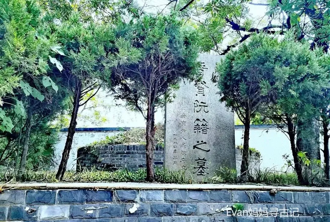 校园内除凤凰台遗址,尚有阮籍衣冠冢。黄裳先生在1980年的文中曾引《雨花》月刊所述:“四十三中校园内的阮籍衣冠冢已被彻底平掉,我在乱石堆中只找到大约十分之一块墓碑。”可见清末所立碑石早已湮灭,无怪许多记载称“该碑已佚”。此墓于1981年得以整修,如今静静立于花露岗上——那是东晋学子为纪念先贤所立的衣冠冢。《资治通鉴》有记:“谯郡嵇康、陈留阮籍、籍兄子咸、河内山涛、河南向秀、琅琊王戎、沛人刘伶特相友善,号竹林七贤。”魏晋易代之际,政局晦暗,竹林七贤以山林遨游、纵酒伴狂远避污浊、恪守清节,其风骨至今仍被后人景仰。