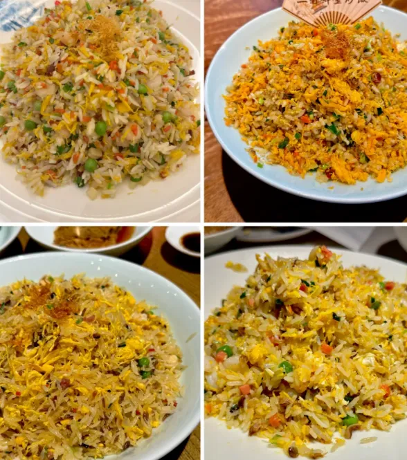 - • 扬州炒饭:蛋、虾仁、火腿翻炒。最正宗的在老牌茶社。