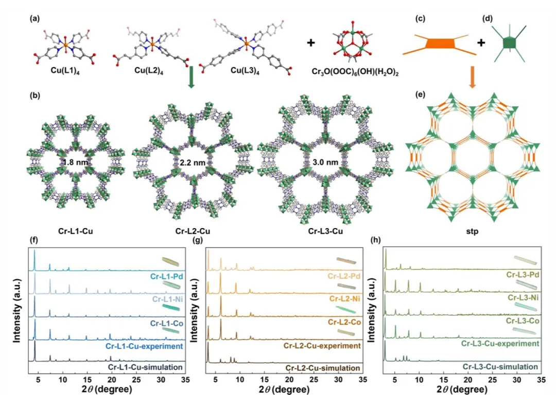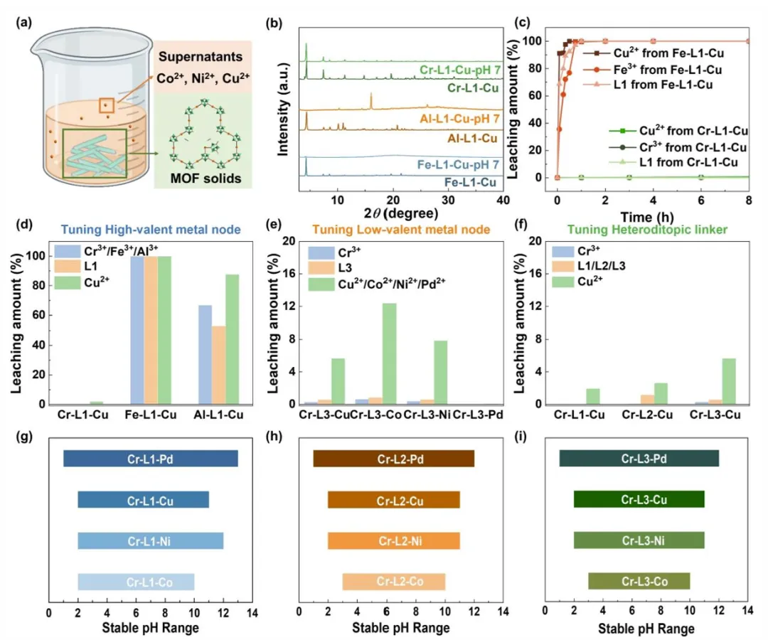 通过调节两种金属的种类和连接臂的长度,团队精确调控了材料的“呼吸”频率与幅度。例如,用铜(Cu)或镍(Ni)作“门轴”时,材料在水溶液中会发生可逆的键断裂与重组,形成瞬时通道;而用钯(Pd)则过于稳定,无法开门——这也反向验证了机制。