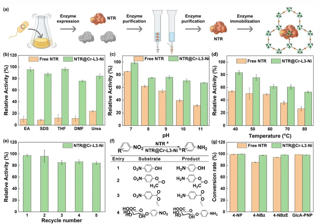 更令人振奋的是,他们实现了双酶共封装——将NahK和GlmU两种不稳定的糖基转移酶同时装入同一MOF中,用于高效合成高价值的糖核苷酸(UDP-GlcNAc)。这种产物是合成肝素、透明质酸等重要生物材料的关键前体。