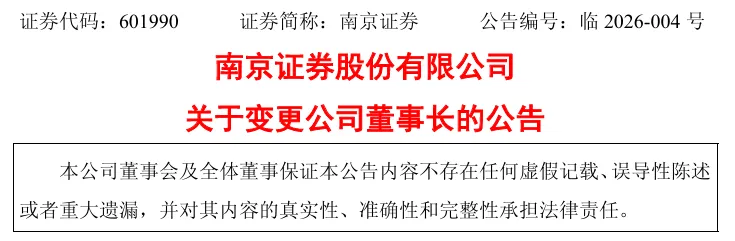 2026年3月7日,南京证券发布公告,宣布董事长发生变更。李剑锋因到龄原因,于3月6日提前离任公司董事长、董事及董事会相关专门委员会职务。公司同日召开董事会,选举夏宏建为第四届董事会董事长,任期至本届董事会届满。夏宏建将同时担任公司法定代表人及董事会相关委员会主任委员。