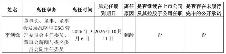 公司于2026年3月6日召开第四届董事会第十五次会议,会议审议通过了《关于选举公司董事长的议案》,选举夏宏建先生(简历详见附件)为公司第四届董事会董事长,任期自董事会审议通过之日起至本届董事会届满时止。夏宏建先生自正式任职董事长之日起,按照公司《章程》规定担任公司法定代表人,其同时担任董事会发展战略与ESG管理委员会及合规与风险管理委员会主任委员、薪酬与提名委员会副主任委员。李剑锋先生不再担任公司董事长、法定代表人。公司将按有关规定办理法定代表人的工商变更登记手续。