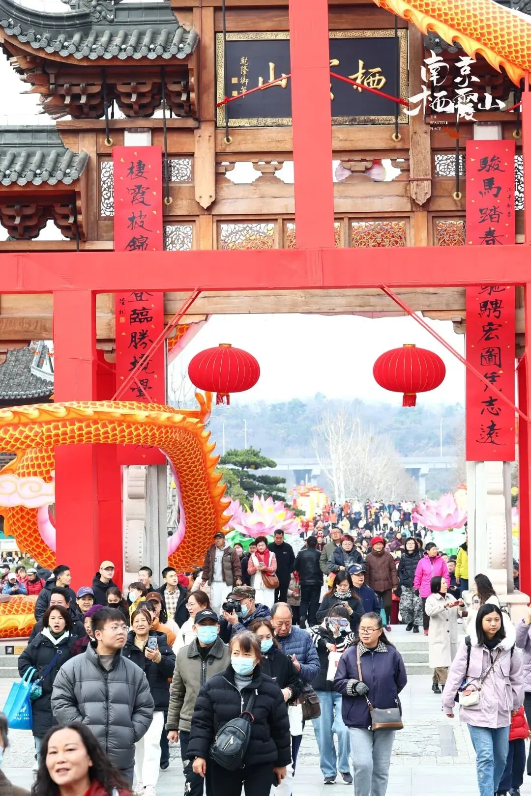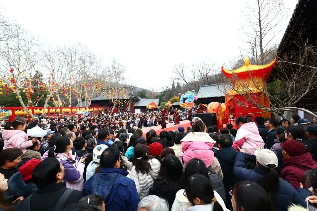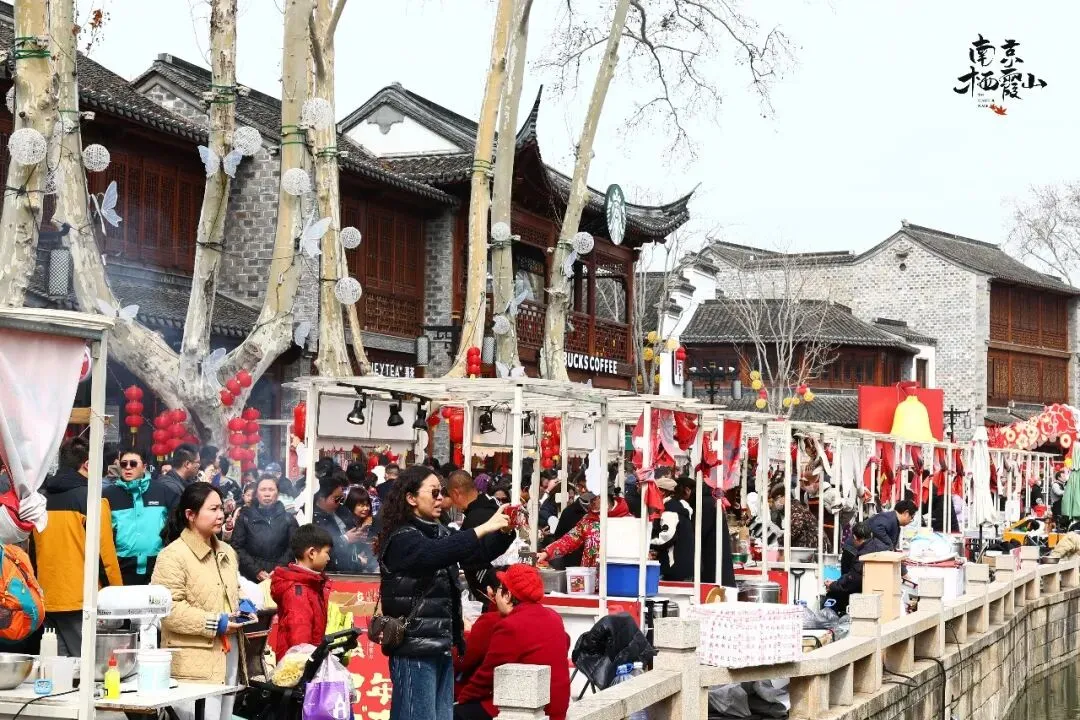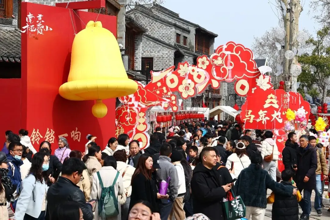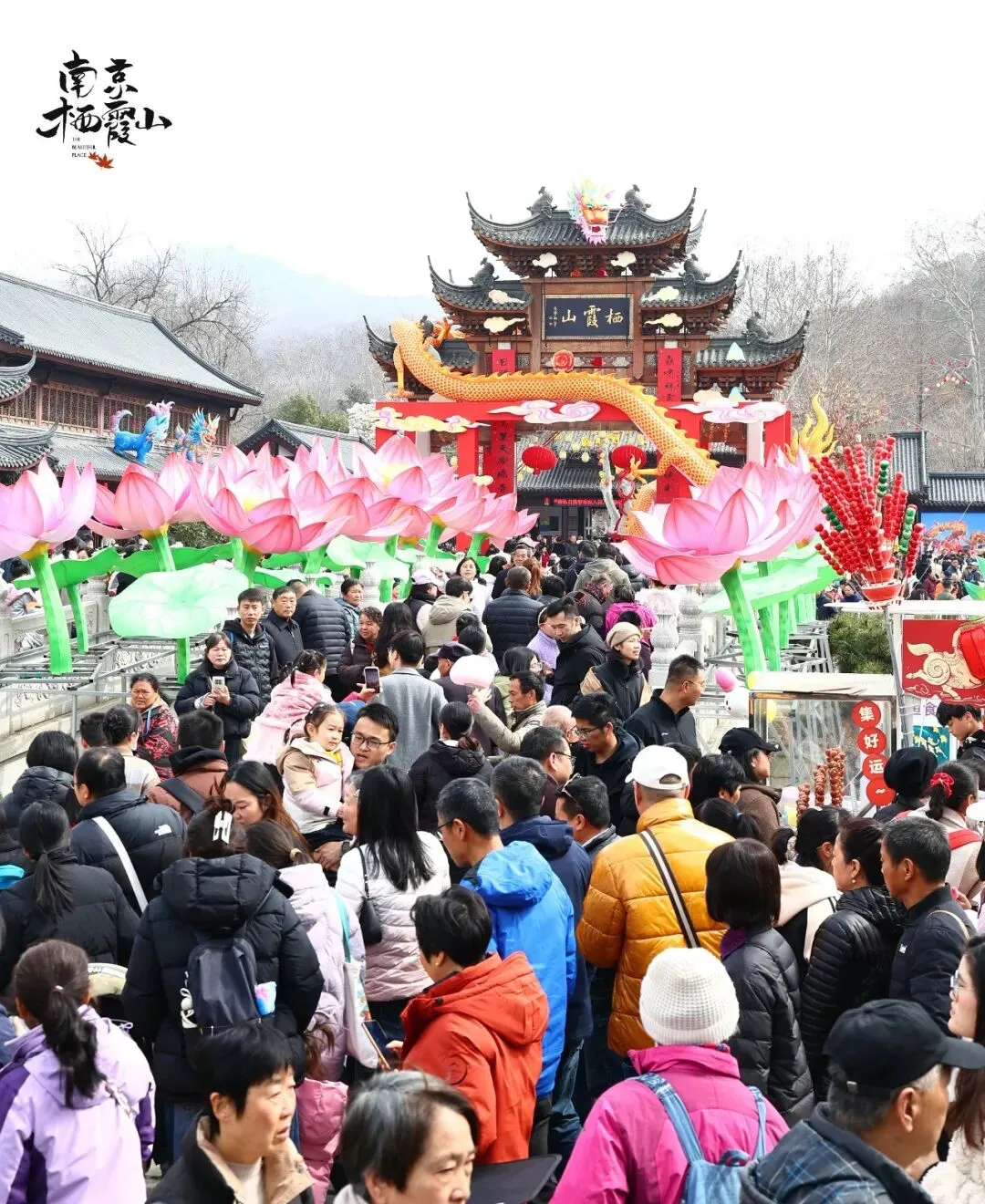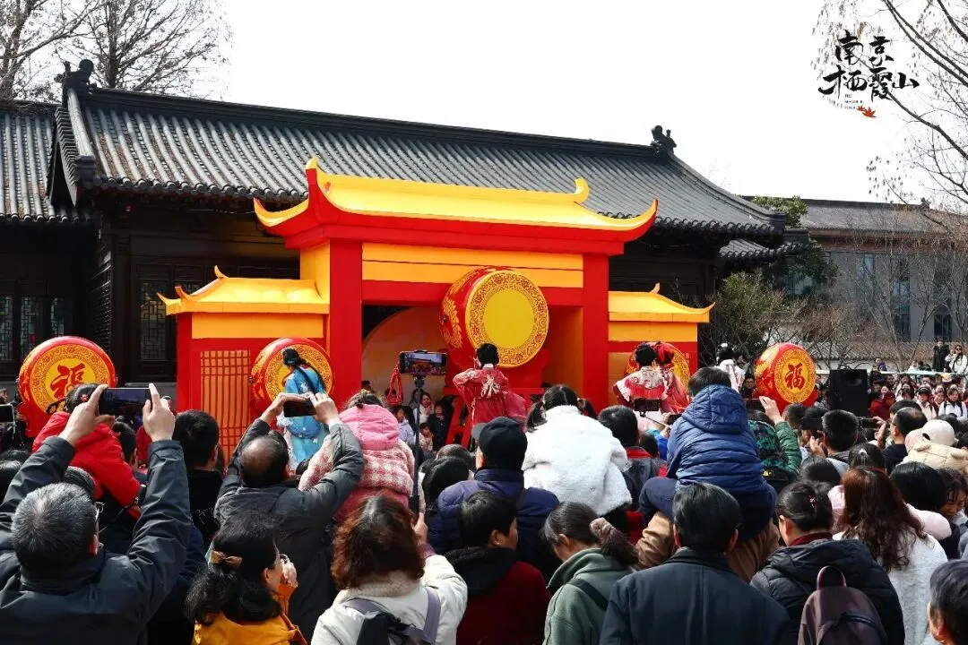 舞台之上歌舞翩跹,乐曲悠扬;台下游人比肩接踵,掌声阵阵。春风拂面,笑语盈山,一场场精彩演出点燃全场热情,栖霞山处处洋溢着欢腾与热闹。古街市集人头攒动,特色小吃、手作好物、民俗小铺一字排开,吆喝声、谈笑声、炊具碰撞声此起彼伏。游人摩肩接踵,边走边逛,烟火气与春日暖意交织,整条古街热闹非凡、年味般的喜气扑面而来。
