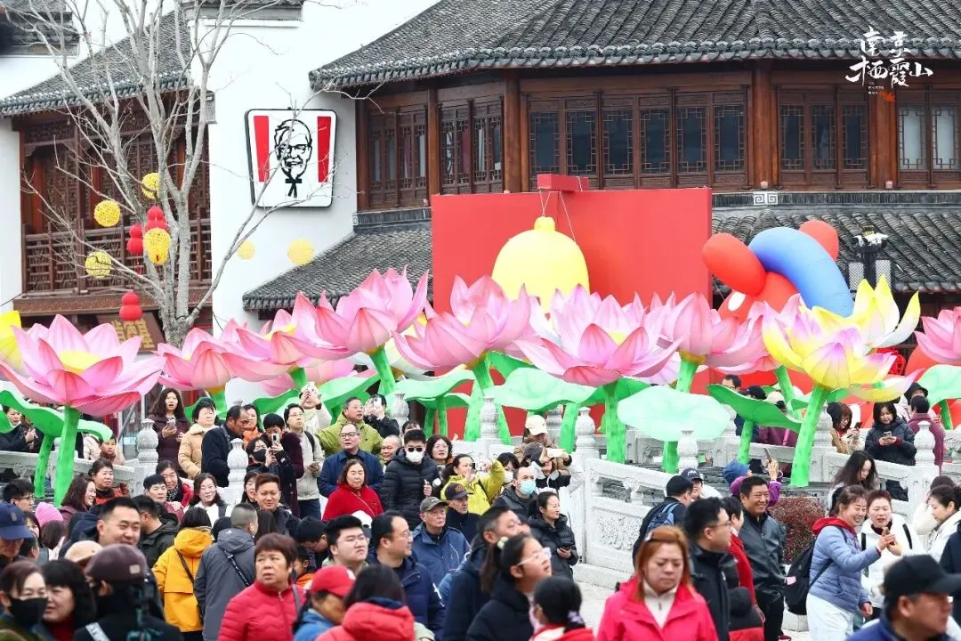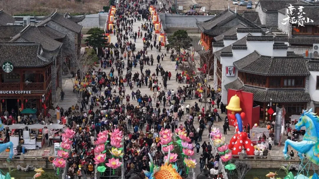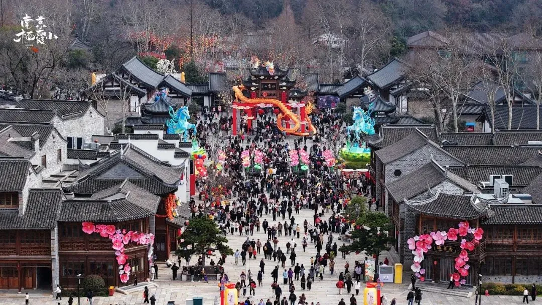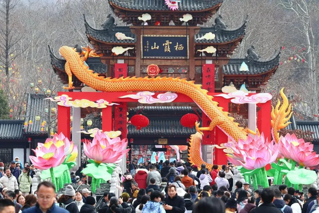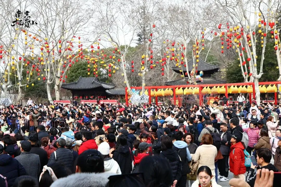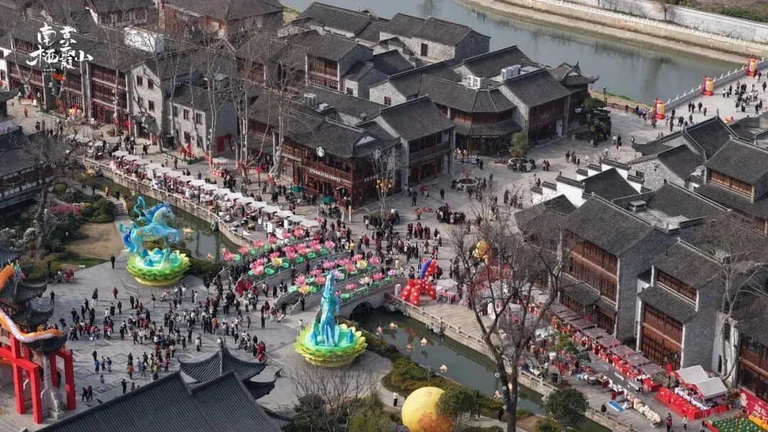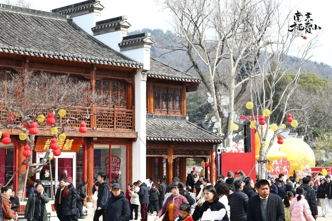 舞台之上歌舞翩跹,乐曲悠扬;台下游人比肩接踵,掌声阵阵。春风拂面,笑语盈山,一场场精彩演出点燃全场热情,栖霞山处处洋溢着欢腾与热闹。古街市集人头攒动,特色小吃、手作好物、民俗小铺一字排开,吆喝声、谈笑声、炊具碰撞声此起彼伏。游人摩肩接踵,边走边逛,烟火气与春日暖意交织,整条古街热闹非凡、年味般的喜气扑面而来。
