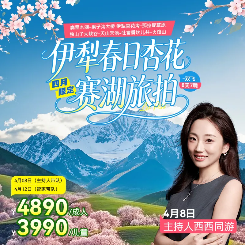4月8日/12日成人福利价4890元/人起。儿童福利价3990元/人起。
