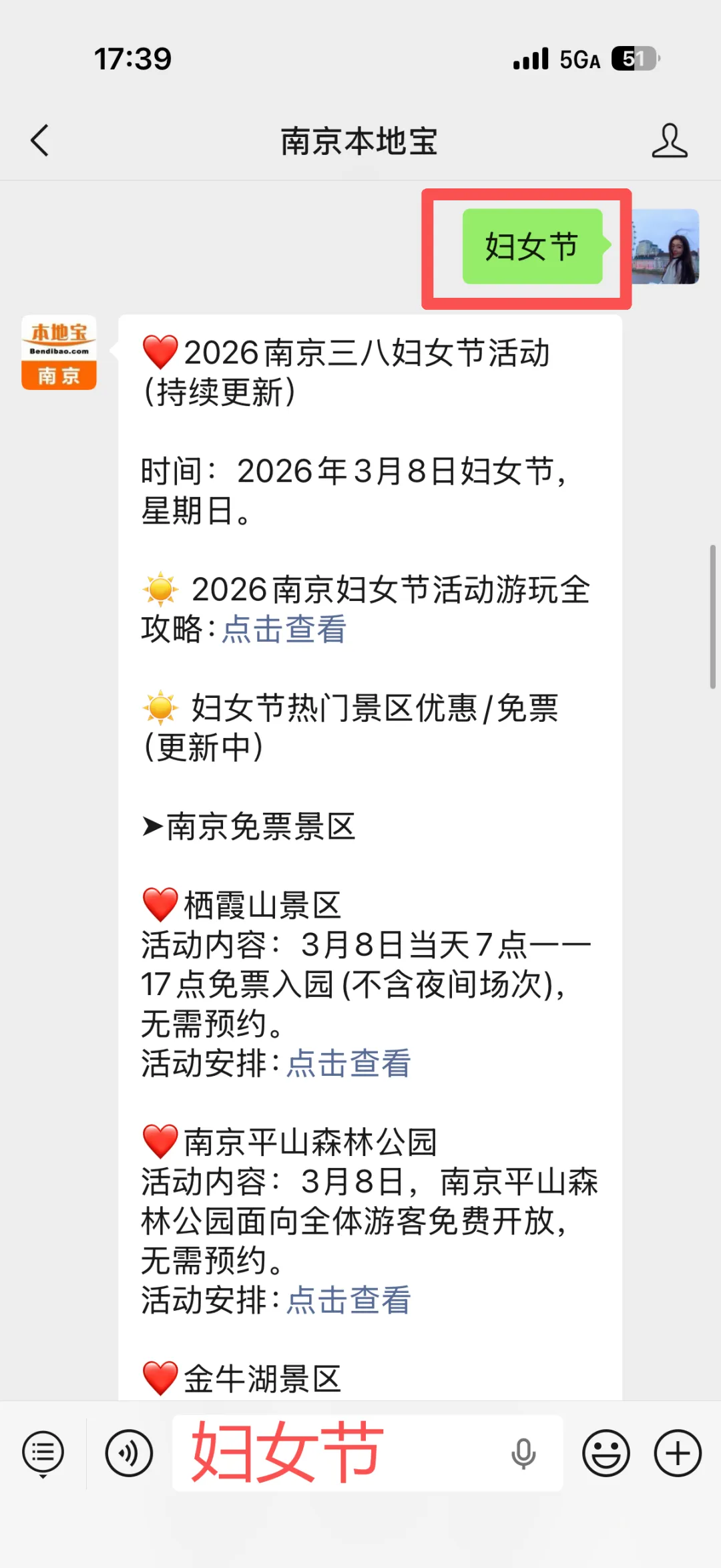 小编提醒:扫描下方二维码,关注【南京本地宝】,后台对话框回复【妇女节】即可获取南京妇女节免费景区汇总、各景点/商场妇女节活动安排等。