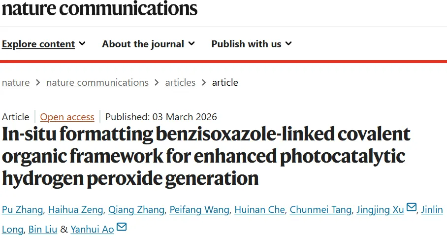 河海大学敖燕辉/南京信息工程大学徐晶晶最新Nature子刊 | 原位构建苯并异噁唑连接的COF增强光催化合成过氧化氢!