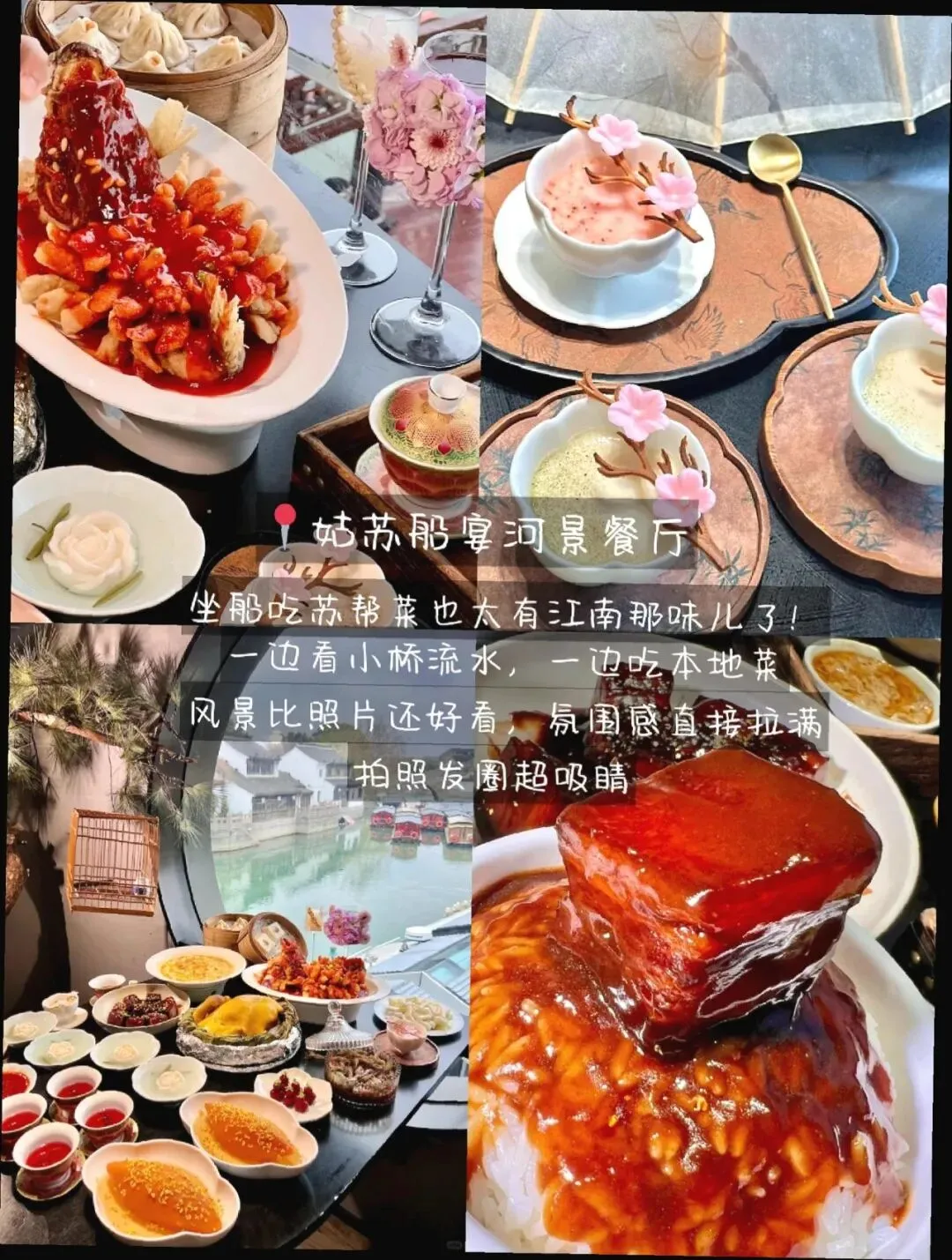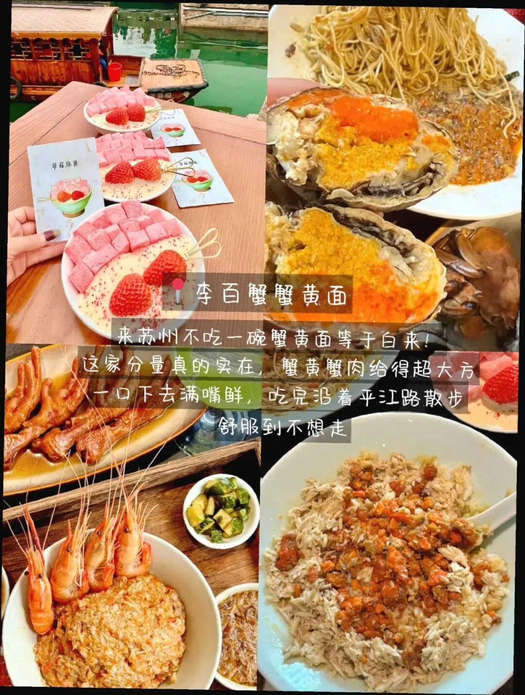 ② 河景仪式感区(约会/请客不踩雷) 李百蟹蟹黄面:蟹黄给得大方,拌面和蟹粉饭都稳。 姑苏船宴河景餐厅:窗边位能亲眼目睹小桥流水,出片和口味都在线。💫