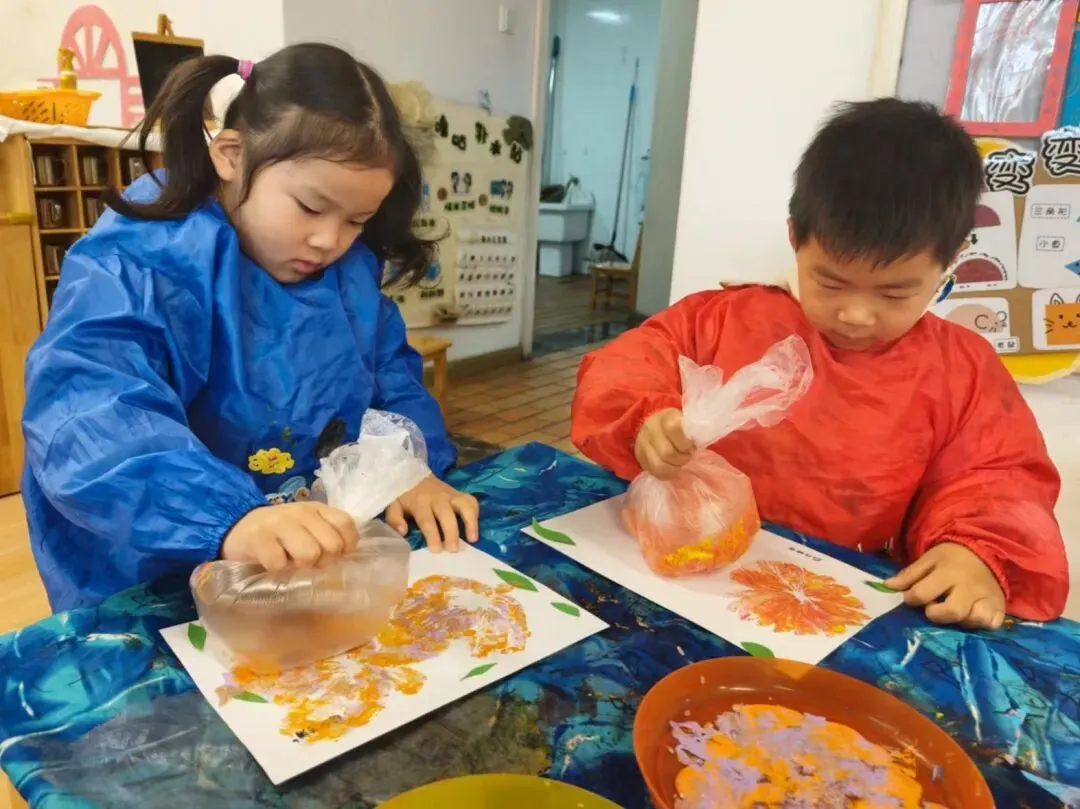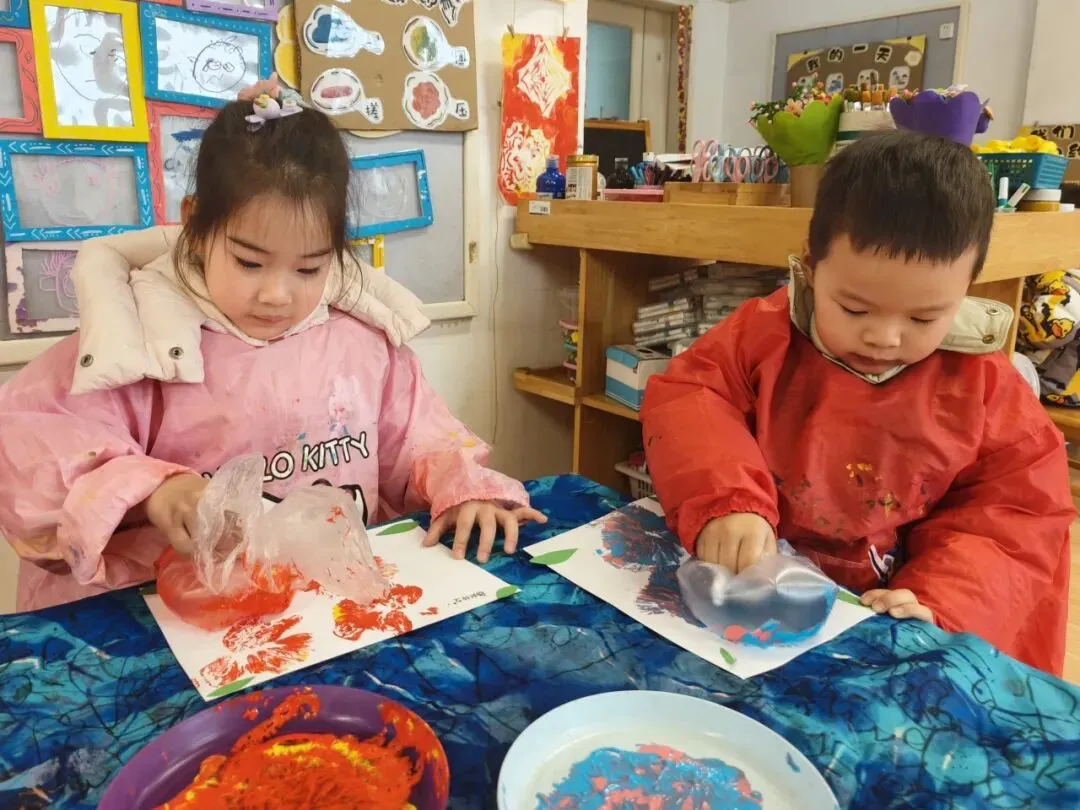 我用保鲜袋蘸颜料,