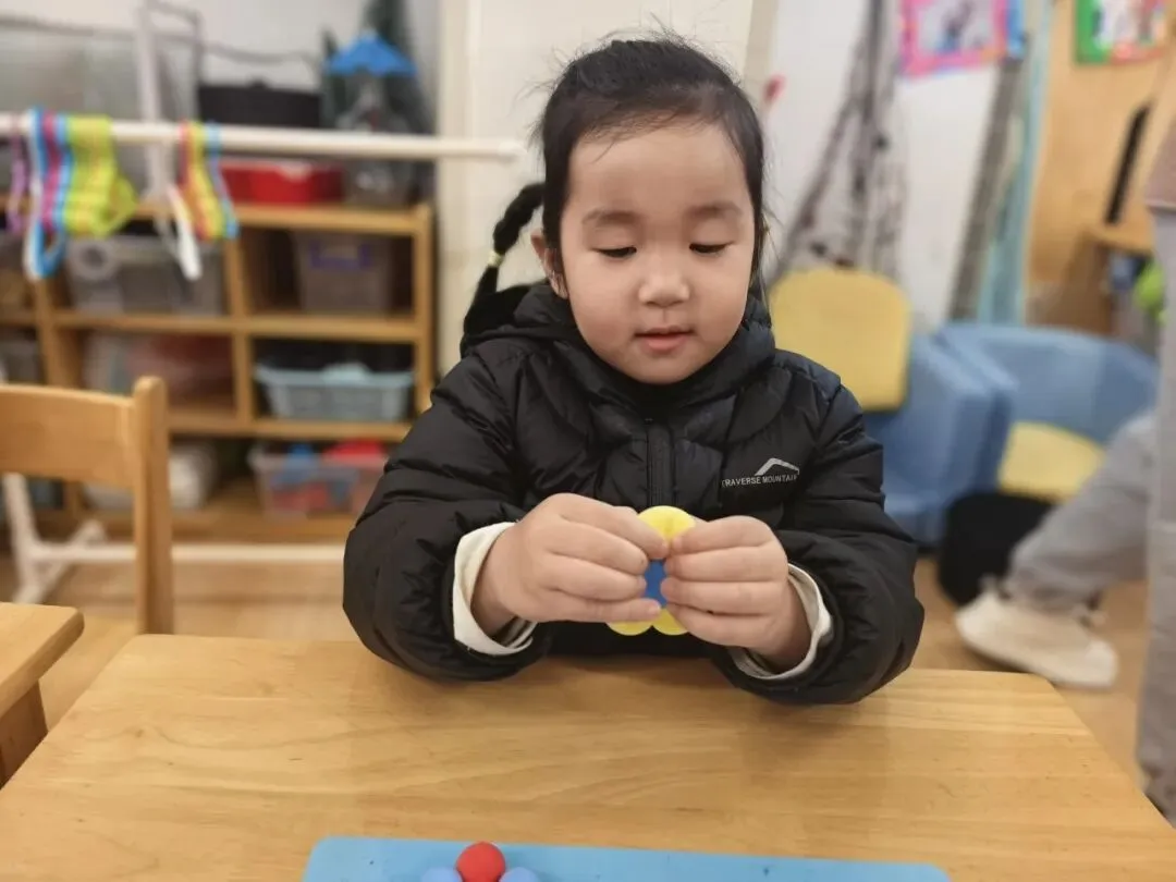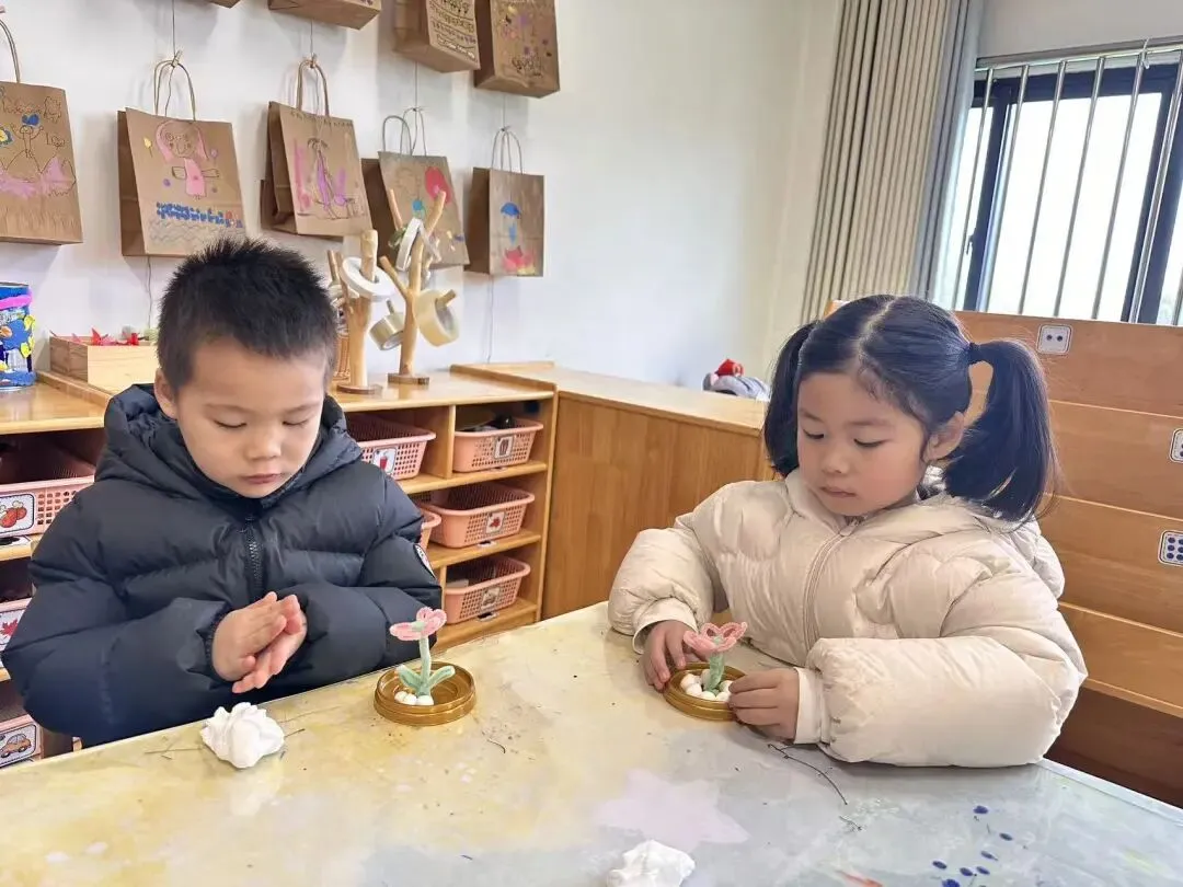 我捏了粘土小花,
