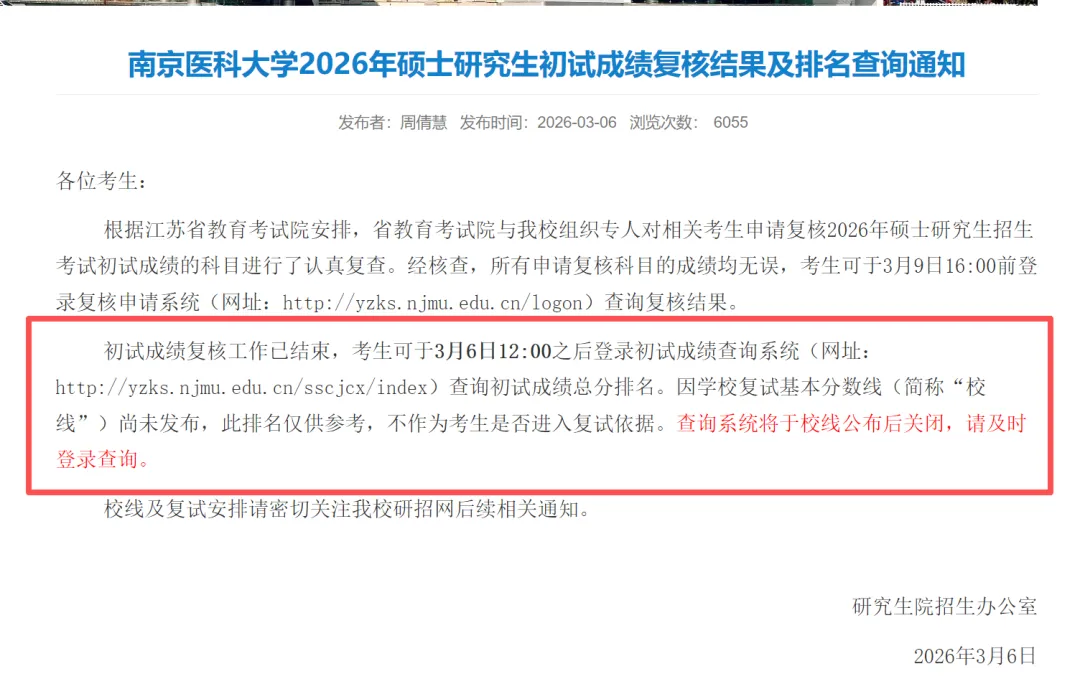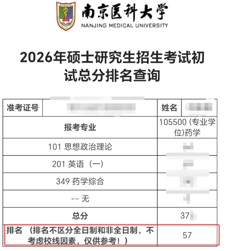 南京医科大学公布排名了,截止到目前,26考研成绩复核提交已基本结束,今年的考研成绩也即将尘埃落定。这两天,应该会有很多院校陆续公布排名,大家记得经常刷新学校官网!