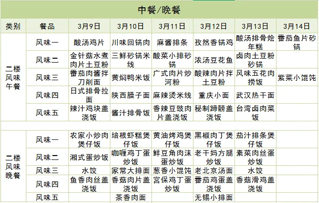 每周食谱