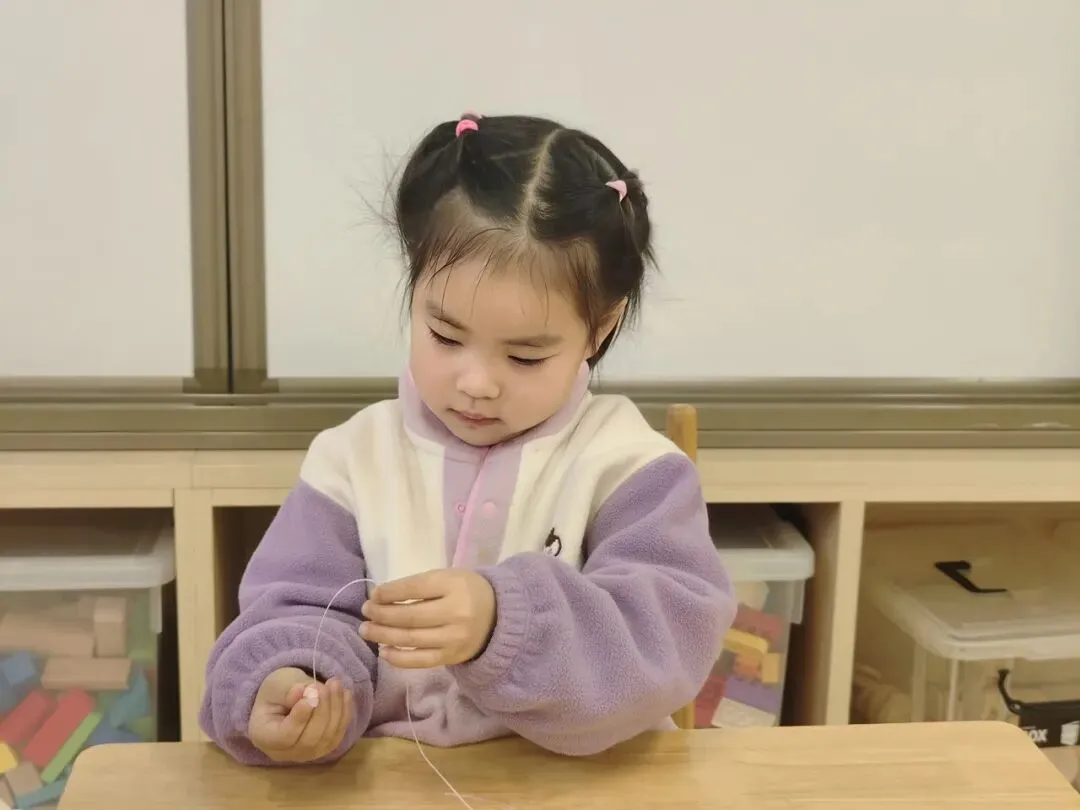 “珠子亮晶晶的,我要串一个最漂亮的戒指给妈妈戴!”