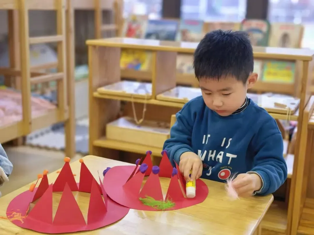 小三班的宝贝们,他们认真制作手工王冠,折叠、粘贴、装饰,用心点缀每一处细节。在孩子们心中,妈妈、奶奶……就是最了不起的女王。一顶顶小巧精致的王冠,藏着满满的祝福,愿每一位女神都闪闪发光。
