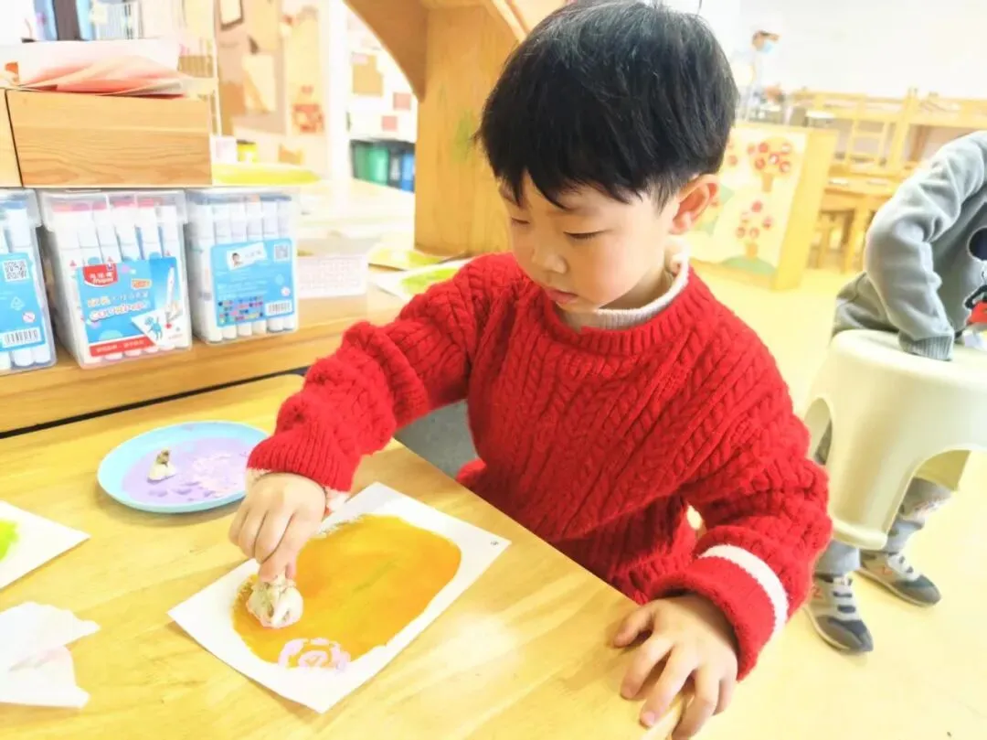小四班的小朋友们用水粉印出浪漫与美好。蘸取颜料,轻轻按在纸上,一朵朵玫瑰在纸上绽放。简单的图案,满满的真诚,把最温暖的祝福,都藏进这一朵朵美丽的玫瑰里。