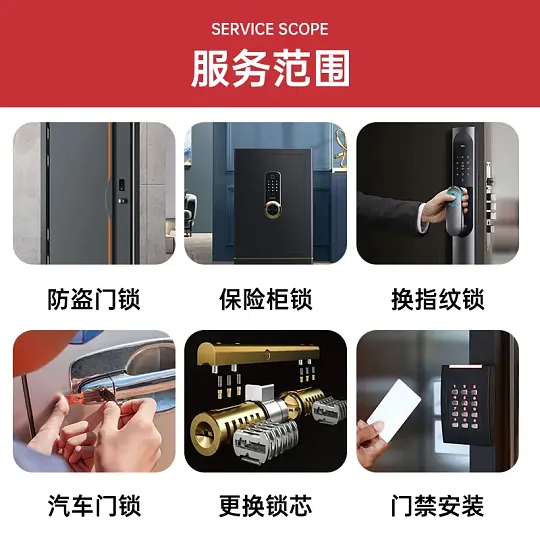 🔑 日常锁具应急与保养:处理钥匙折断、防盗门卡死、智能锁失灵等突发状况,提供锁芯修复、更换及定期保养服务,延长锁具使用寿命。