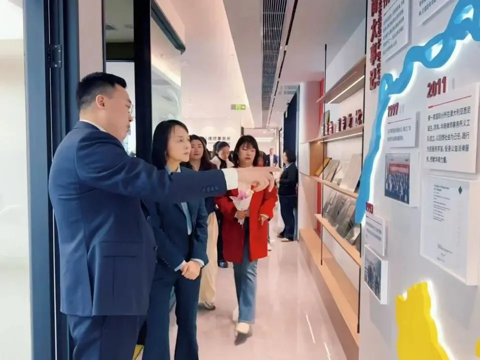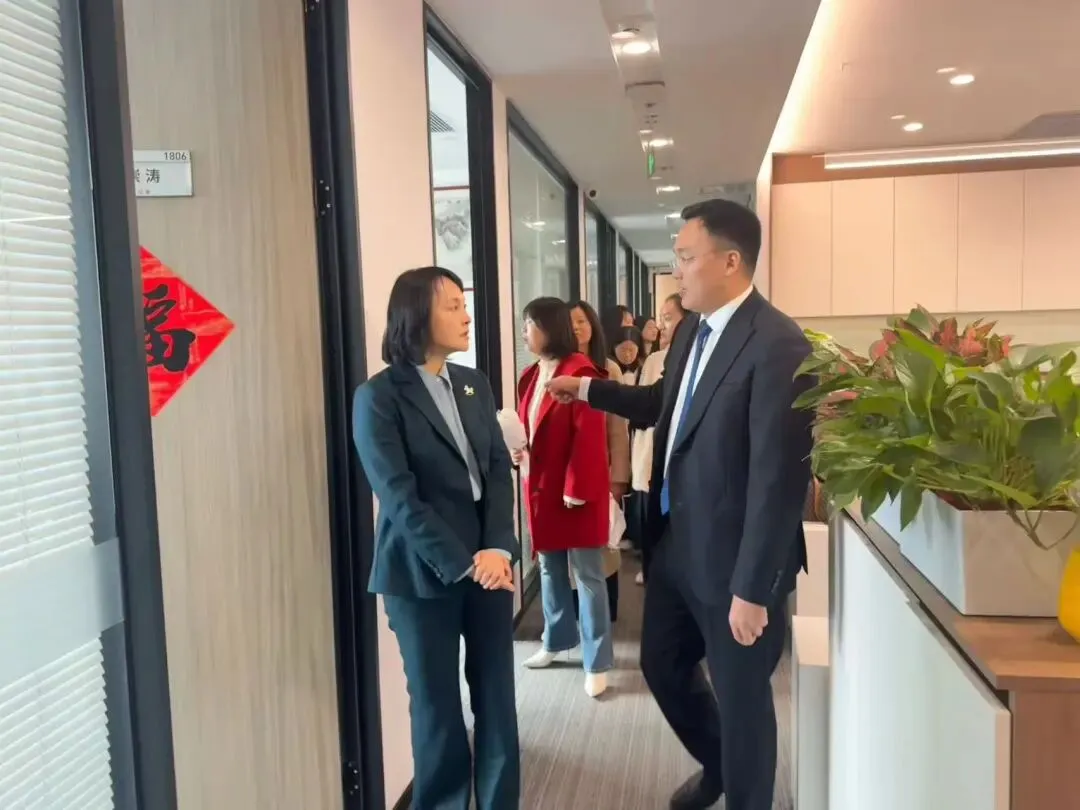 在南京分所主任韩洋、党支部书记彭沁子的陪同下,我所一行参观了南京分所的文化墙、办公环境、党建活动室等功能区域,每一处细节都彰显其专业有序的办公风貌与充满人文关怀的细节设计,给我们留下了深刻印象。