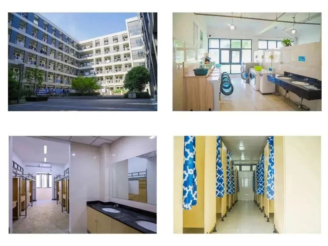 校园环境优美、生活设施齐全。学生公寓按上床下桌柜标准设计建设,4-6人间带阳台宿舍,内配空调、洗漱台和独立卫生间,网络全覆盖;每层均有专门洗浴间,每栋配有洗衣房。住宿费用为每生1000-1200元/学年。