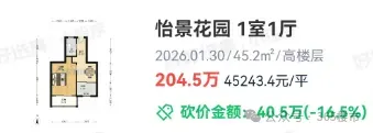 比如“拉小+29中”加持的怡景花园,二手房成交价最高曾直逼10万/㎡,现在单价最低“3”字头,刚刚成交1套建面约45.2㎡房源,总价只要204.5万。