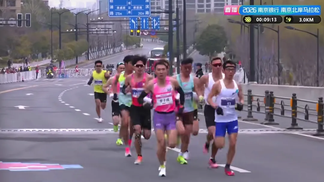 10公里赛道彻底筛选出最终的对决双方,李子成与王佳浩并肩领跑,用时30分46秒,平均配速稳定在3分05秒,身后选手已被彻底甩开;