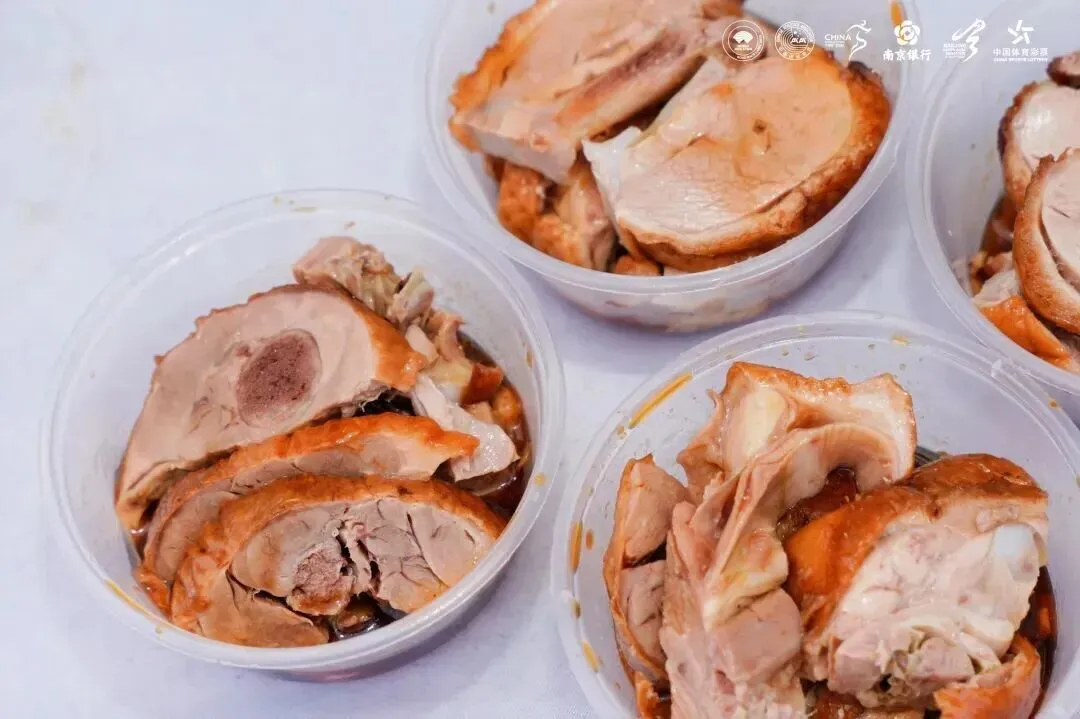 在感知最直接的服务——补给方面,赛事也结合南京特色。除了标配的饮用水、电解质饮料、能量胶、盐丸、香蕉、小番茄等基础补给外。在完赛之后的补给区更重磅推出了南京特色美食补给:南京烤鸭。让跑者在跑完比赛之后,也能尝到南京美食,诚意直接拉满。
