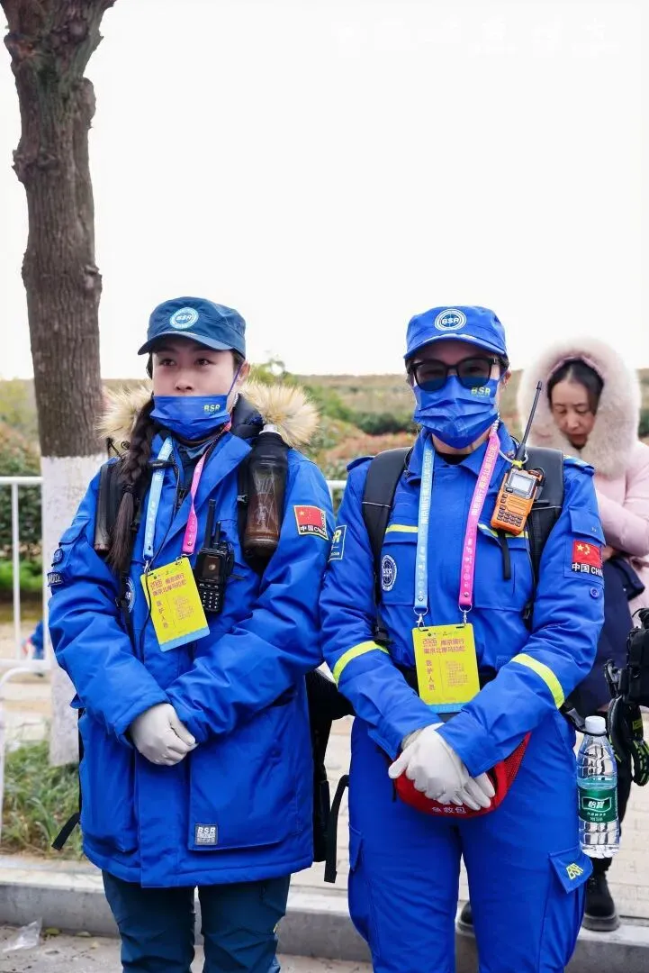 医疗点,医护人员时刻待命;补给站的水和运动饮料从不间断,青年志愿者们递水递海绵,手上动作不停,嘴上还在喊“加油”。此外众多安保人员、环卫工人等紧密协作,确保跑者无忧驰骋。