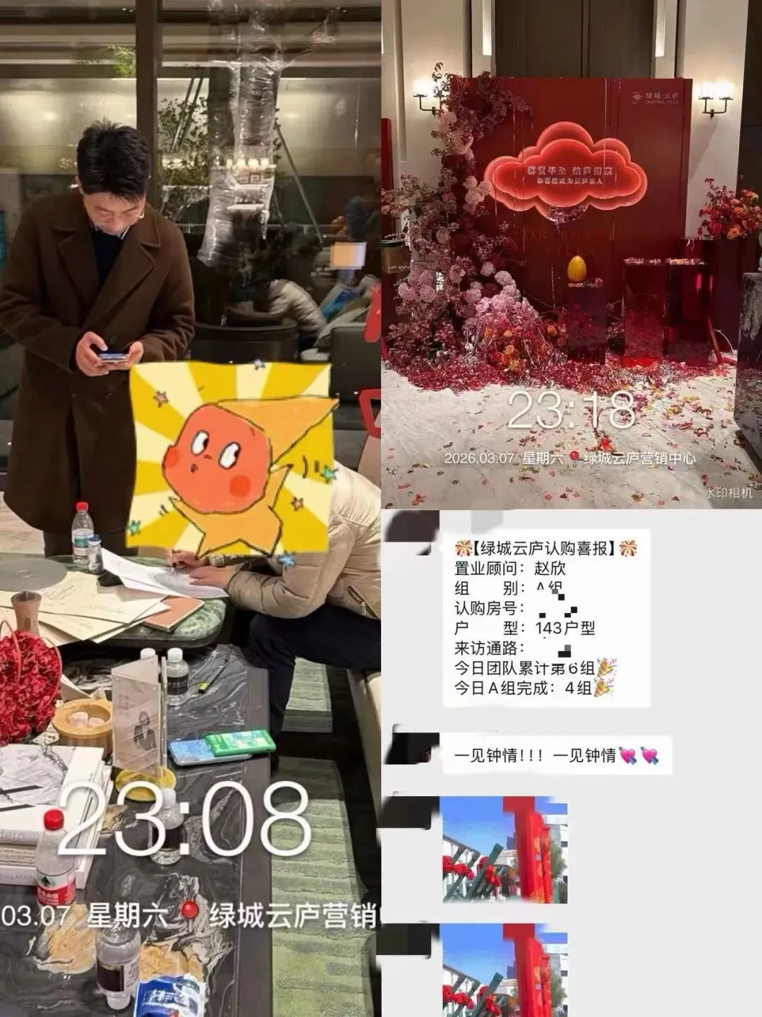 比如,鼓楼热盘中建宁悦府,周末两天也是成交不断。售楼员忙到脚不沾地,都没时间回复微信消息。比如,紫金山下低密豪宅绿城·云庐,周六深夜还在群里发成交。绿城·云庐,由绿城中国独资开发,距离紫金山直线距离约900米,容积率只有1.05,规划27栋低密住宅,其中包括14栋7层洋房、13栋3层超低密大宅,为南京塔尖人群提供了“隐于都市,归于山水”的度假式生活体验。比如,燕子矶保利国贸璟上最近也卖出加速度,今天上午售楼处座无虚席。昨晚十一点多,销售还在群里发成交。比如,江北核心区映象星潮,售楼处几乎从早到晚都有客户在看房。这是万科高端产品系「映象系」南京首子,一经亮相就震撼地产圈。容积率约1.7,打造10栋低密洋房、2栋小高层,最低仅6层,是南京主城难得的低密真洋房,首次开盘就大获成功。