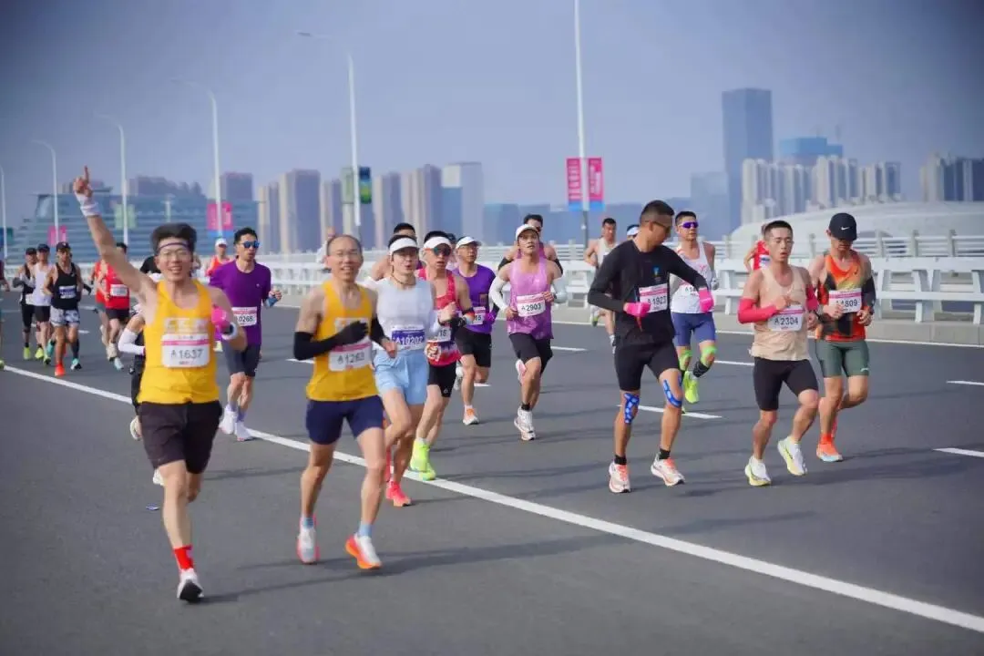 起跑后,我说先陪5公里吧,到5公里我就降速了。他一直不抛弃我,因为速度不快,当然也没有很慢,41x的速度。按我们之前破三的做法,一般是410的,所以我说是他没有抛弃我。我因为没有破三目标,所以跑得还算安心,反正是几公里。就这样跑着,他就算热身,后面再提速吧。