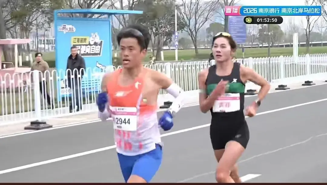 39公里处,王佳浩提速了,开始拉开和李子成的差距,李子成并没有急于去跟,差距不断拉大,看来卫冕近在咫尺。