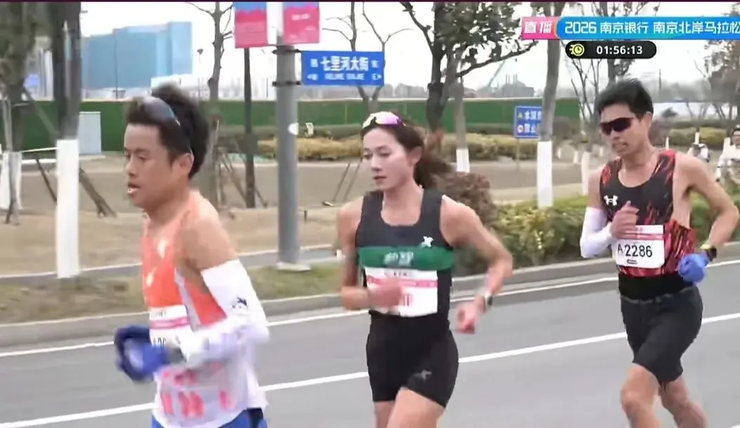 女子前二还是黄菲和张水华,张水华配速有些下降,到了340左右,被拉开到了200米左右。导播很给力,一直在给张水华的镜头,这一点和2026重庆马拉松不一样。