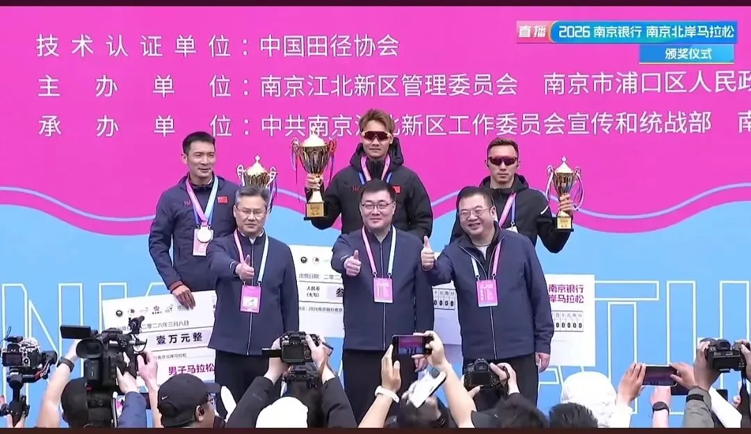 王家浩冲线了,成绩为2小时11分31秒,成功打破了赛会纪录,双喜临门!