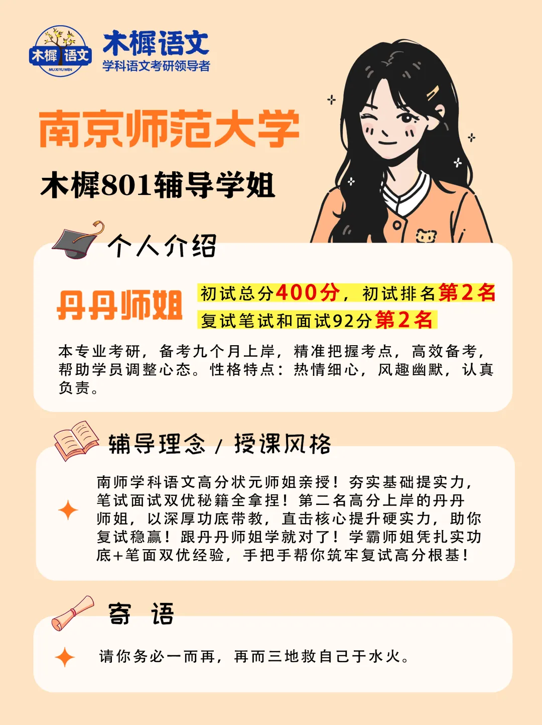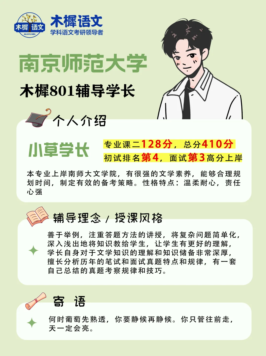 备战复试,就从一份专业的规划开始。欢迎加入木樨语文,我们一起走向南师大!