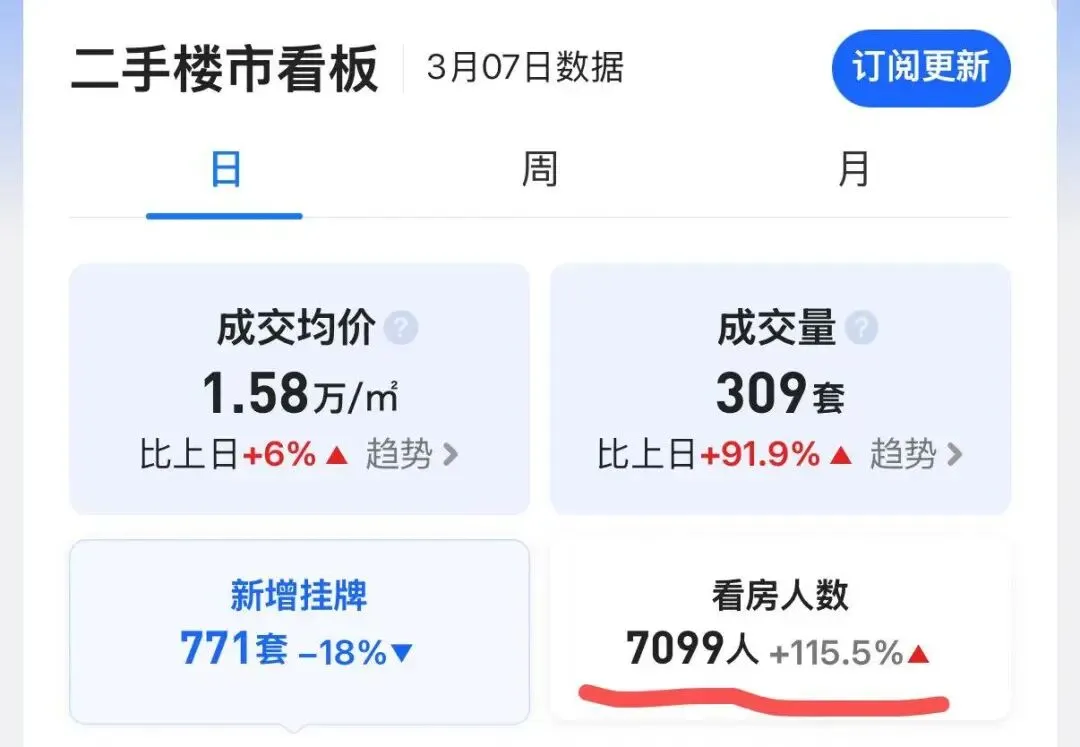 另外值一提的是贝壳3月7日新房单日带看1722组,说明南京房地产市场在3月初呈现明显的“小阳春”行情,购房者的入市意愿强烈,在政策利好和房价调整后,市场信心正在逐步回归。