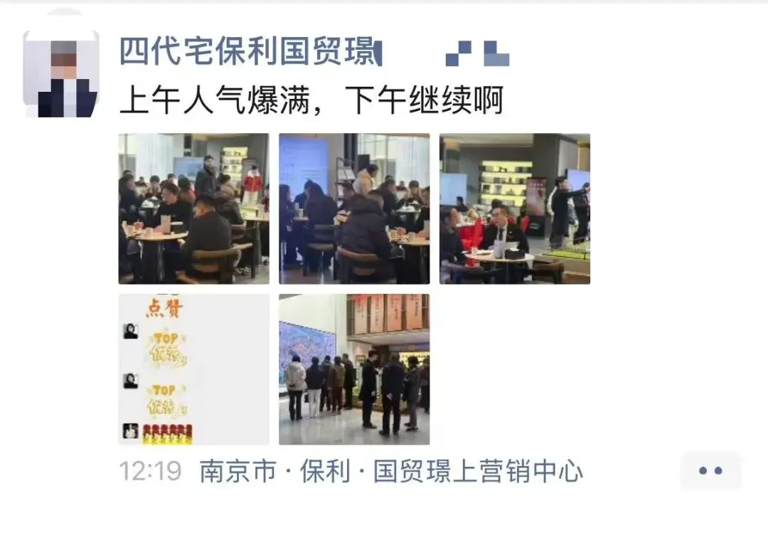 比如,燕子矶保利国贸璟上最近也卖出加速度,今天上午售楼处座无虚席。昨晚十一点多,销售还在群里发成交。