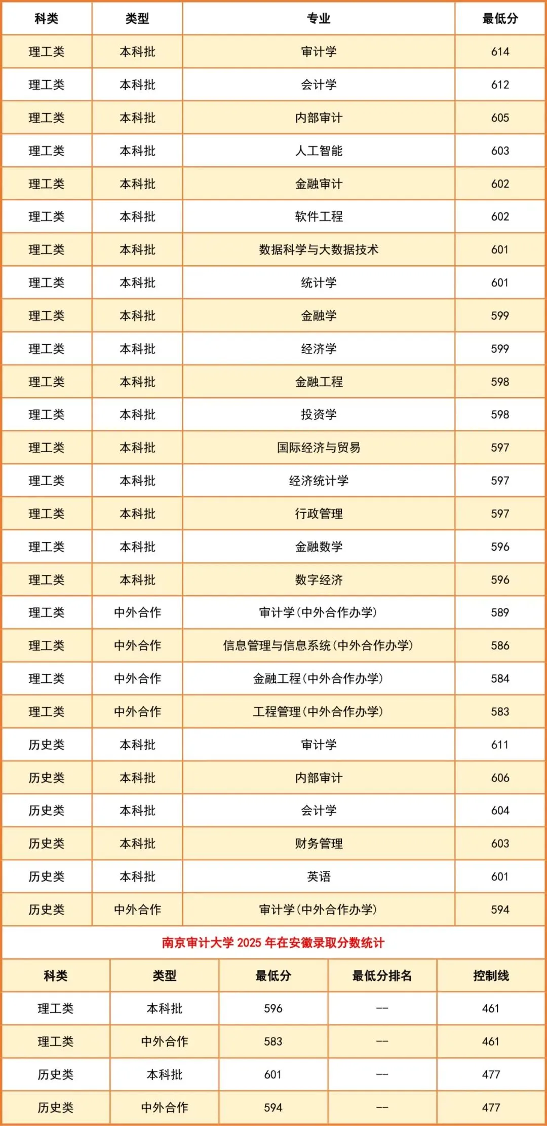 2025年在安徽本科分数线