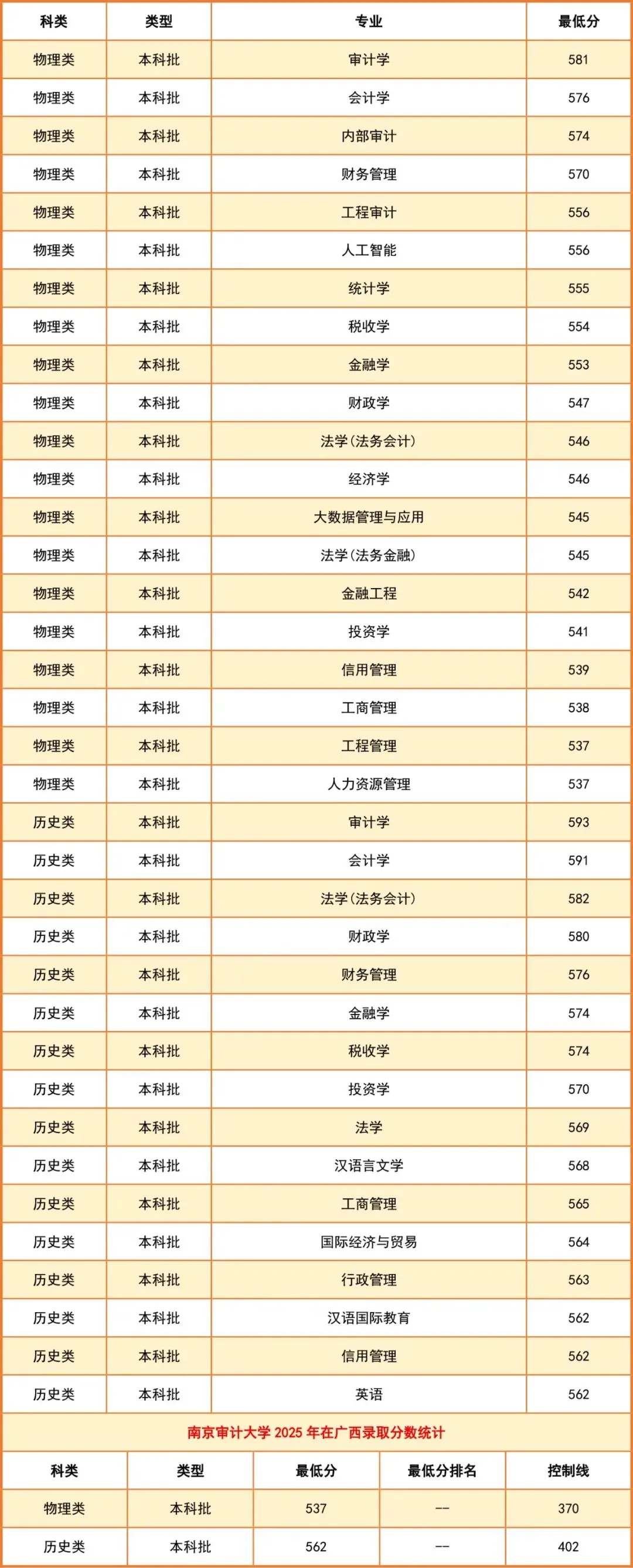 2025年在广西本科分数线