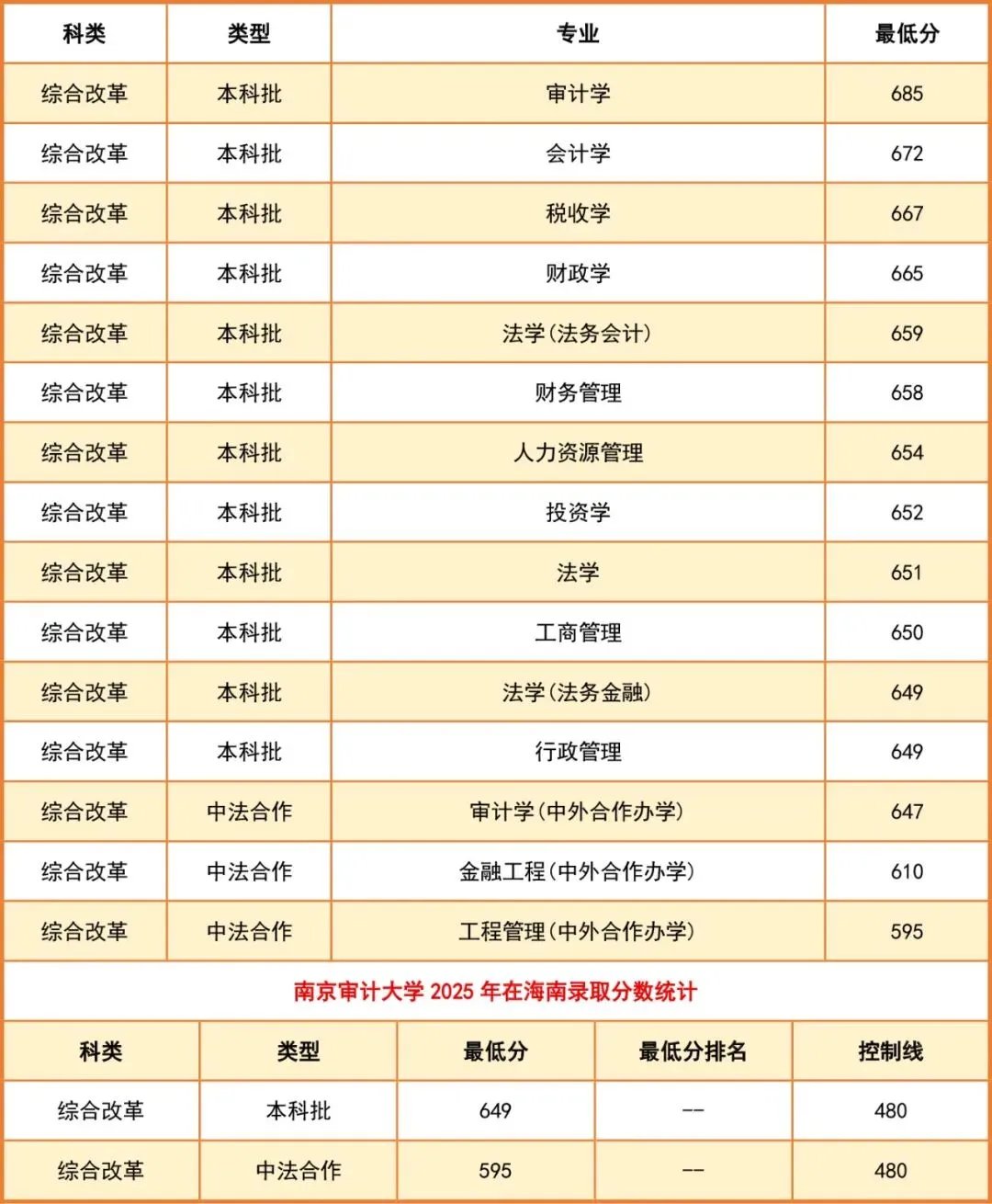2025年在海南本科分数线