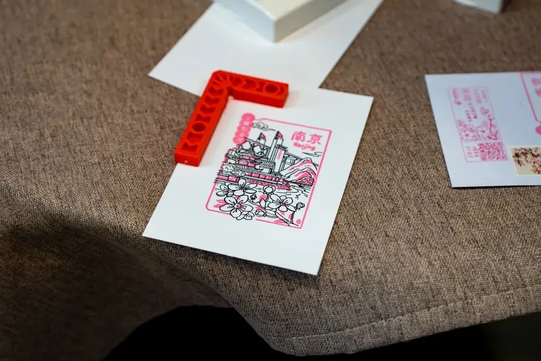 这枚印章将南京长江大桥、古典亭台、金陵繁花等城市元素浓缩方寸,黑色与粉红的套色间,尽显六朝古都的风华。现场学子纷纷打卡盖章,把这份专属的“金陵邮韵”收入囊中。