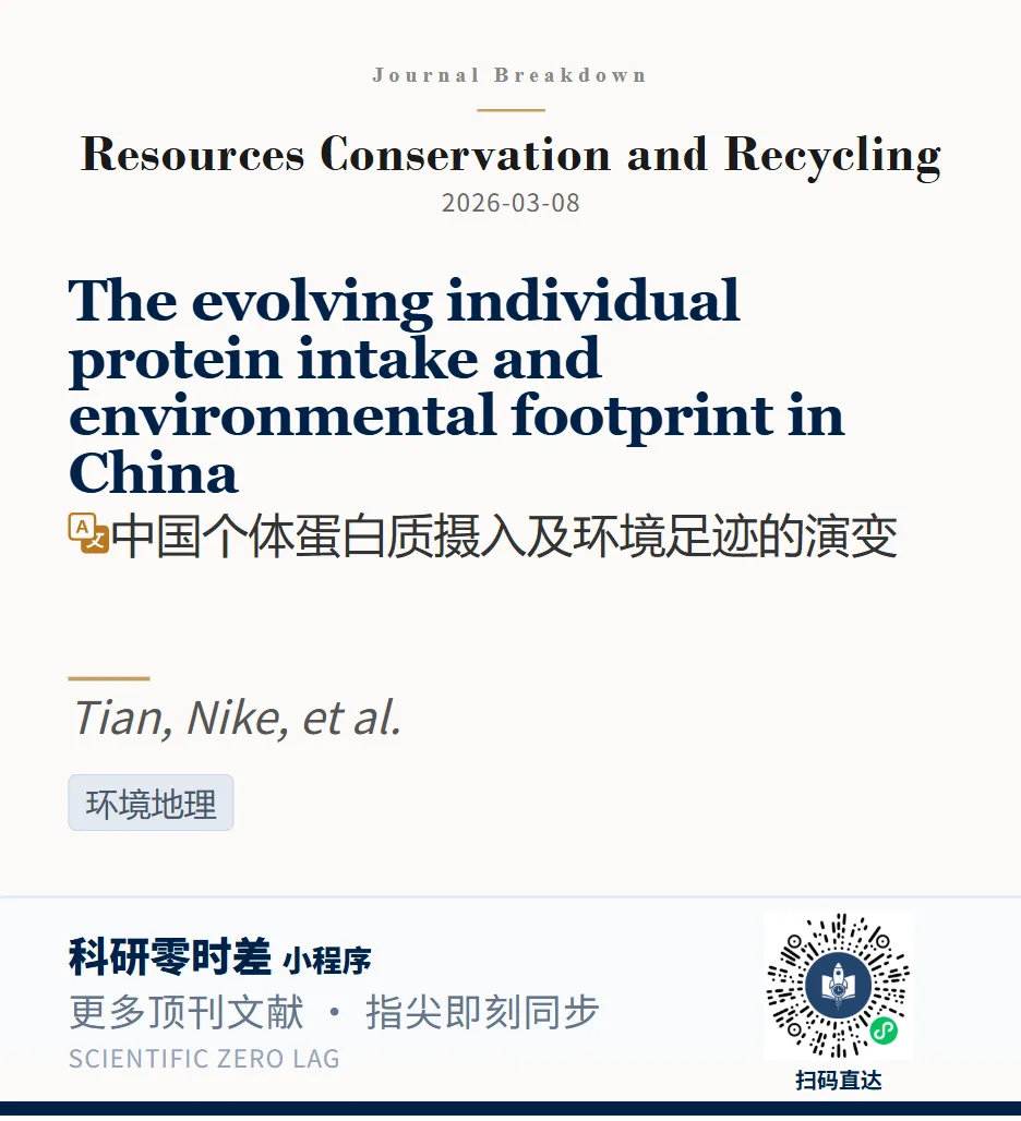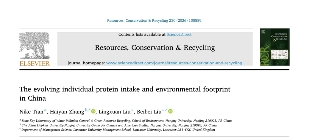 我们通过小程序科研零时差追踪到: Resources, Conservation & Recycling近期发表题为“The evolving individual protein intake and environmental footprint in China”的文章。第一单位为南京大学。