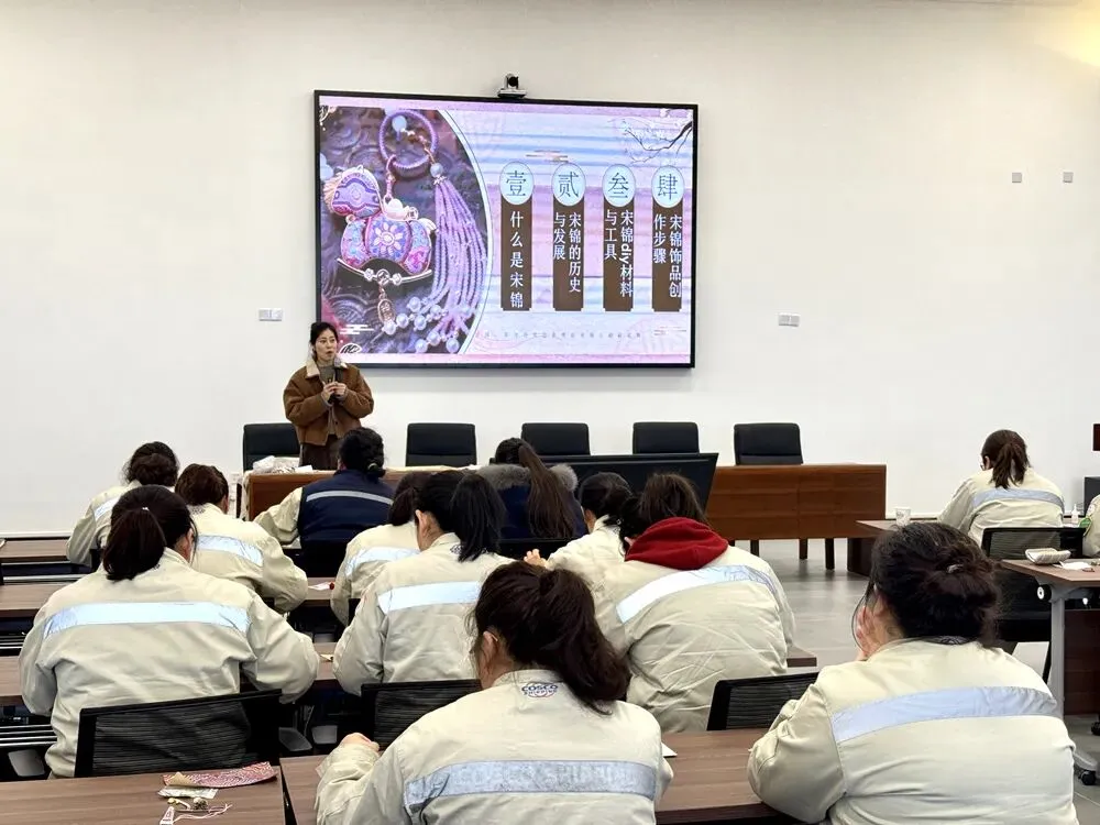 活动伊始,专业手工老师从宋锦的历史渊源讲起,带领大家走进这项非物质文化遗产的技艺世界。“宋锦纹样典雅、工艺繁复,历来多用于书画装裱与高档服饰,今天我们将这份传承千年的技艺融入挂件制作,让非遗走进生活。”老师的讲解深入浅出,女职工们听得津津有味,对即将开始的手工制作充满期待。