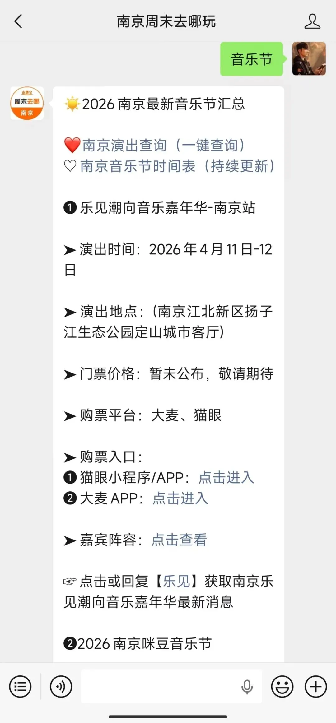 ✅小编提醒:扫描下方二维码,关注【南京周末去哪玩】公众号,私信回复【音乐节】即可获取2026南京音乐节演出安排、演出时间、演出地点、演出门票、购票入口、嘉宾阵容等信息