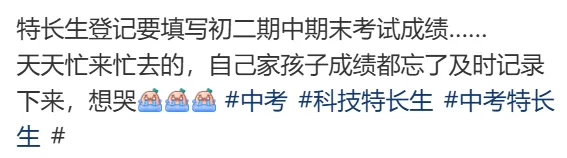 近日,南京一家长在社交平台分享,自家娃要进行中考特长生信息登记,需要填写初二期末考成绩,但家长忘记记录孩子成绩,导致无法填写,对此十分懊悔……