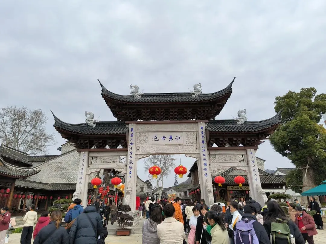 较之数年前,景区大门的外围有很大变化,立了座牌坊,名曰“江东古邑”,穿过牌坊步入新建的“栖霞古镇”。