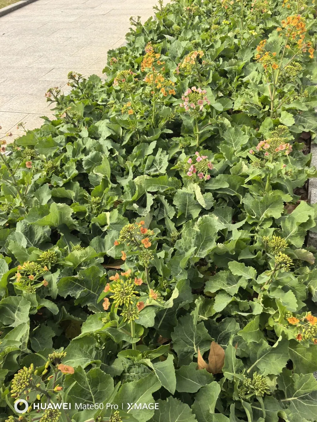 五颜六色的油菜花开了。有高又矮 有早有晚。金黄的,淡红的,紫红的。典型的遗传变异和分离群体。