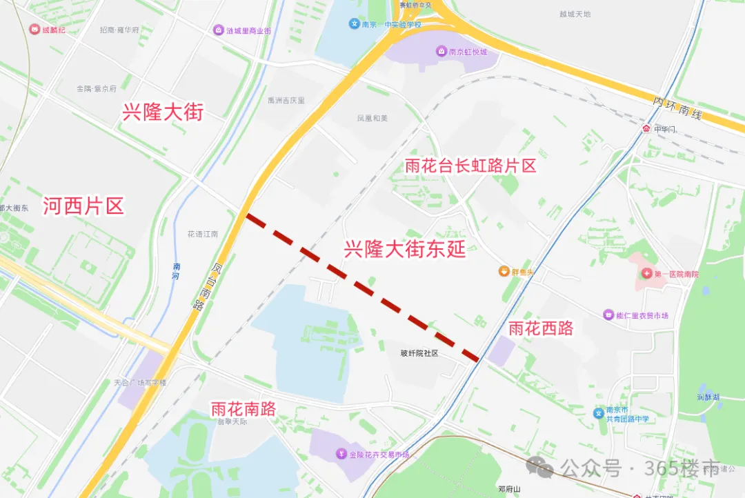 再者则是,兴隆大街东延将进一步促进雨花台区与河西片区融合发展。