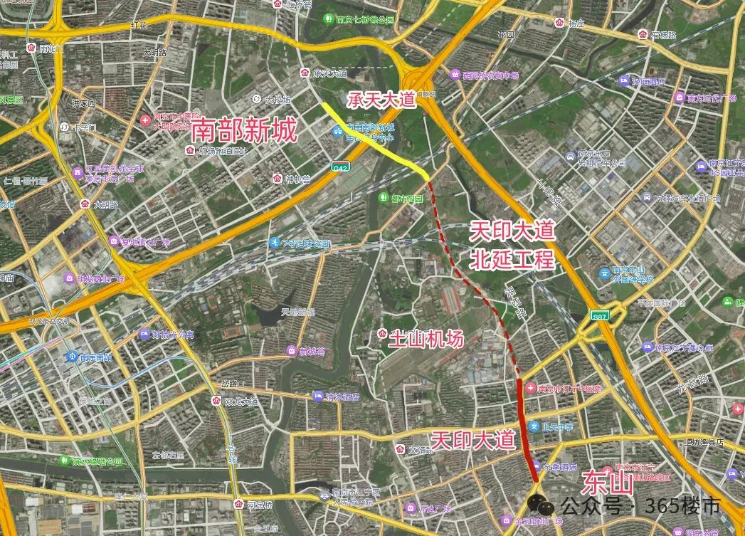 天印大道北延项目北起秦淮东河(江宁界),南至宏运大道。全长约2.7公里,道路宽46米至51米,等级为城市主干道,设计为双向六车道。