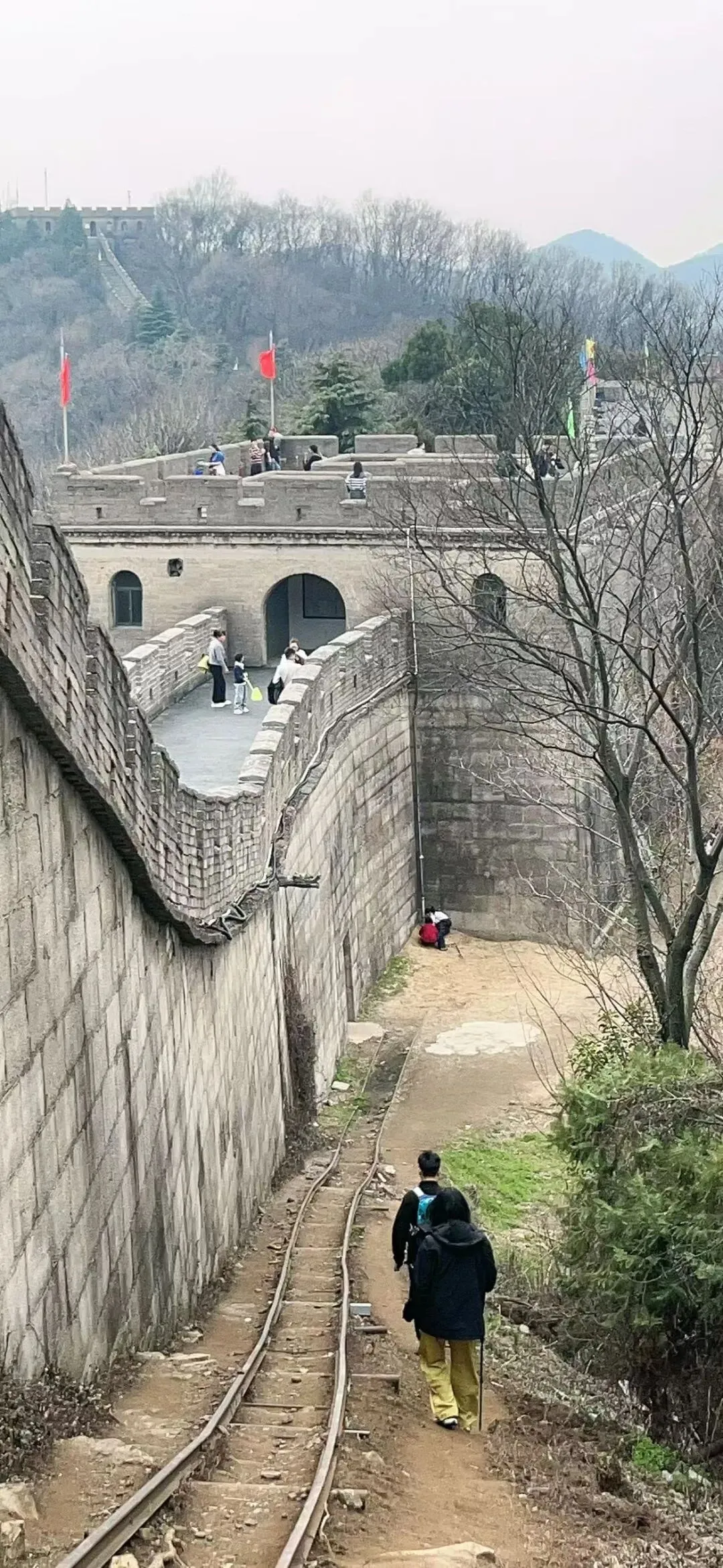 穿过珍珠泉长城,就到了本次徒步最具挑战性的路段——绝望坡。听名字或许会让人望而却步,但其实只要调整节奏、稳步前行,就能顺利攻克[7]。这段坡坡度较陡,部分路段需要手脚并用,累计爬升不算高,却能充分锻炼体能,消耗多余热量,堪称“解压神器”[2]。一路上,搭子们互相鼓励、互相搀扶,累了就停下脚步,看看身边的风景,吹吹山间的风,那份并肩前行的温暖,会让这段挑战变得格外有意义。登顶绝望坡的那一刻,所有的疲惫都会烟消云散,成就感满满,也能更深刻地体会到“无限风光在险峰”的真谛。
